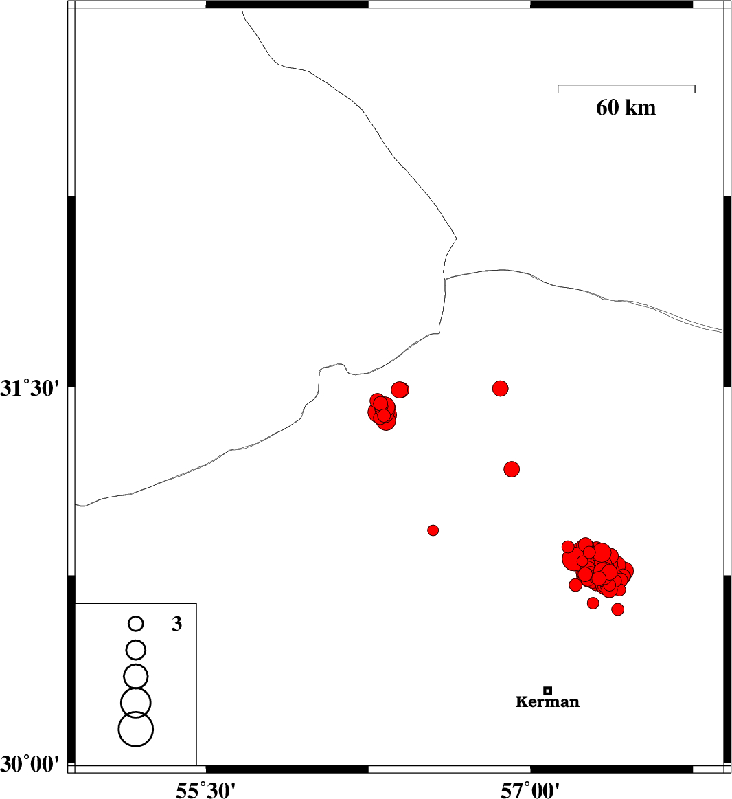 2018/01/03 15:57:14.2 19:27:14.2 30.74457.39417 ML:2.9 Kerman Province, 59 km North-East of Kerman