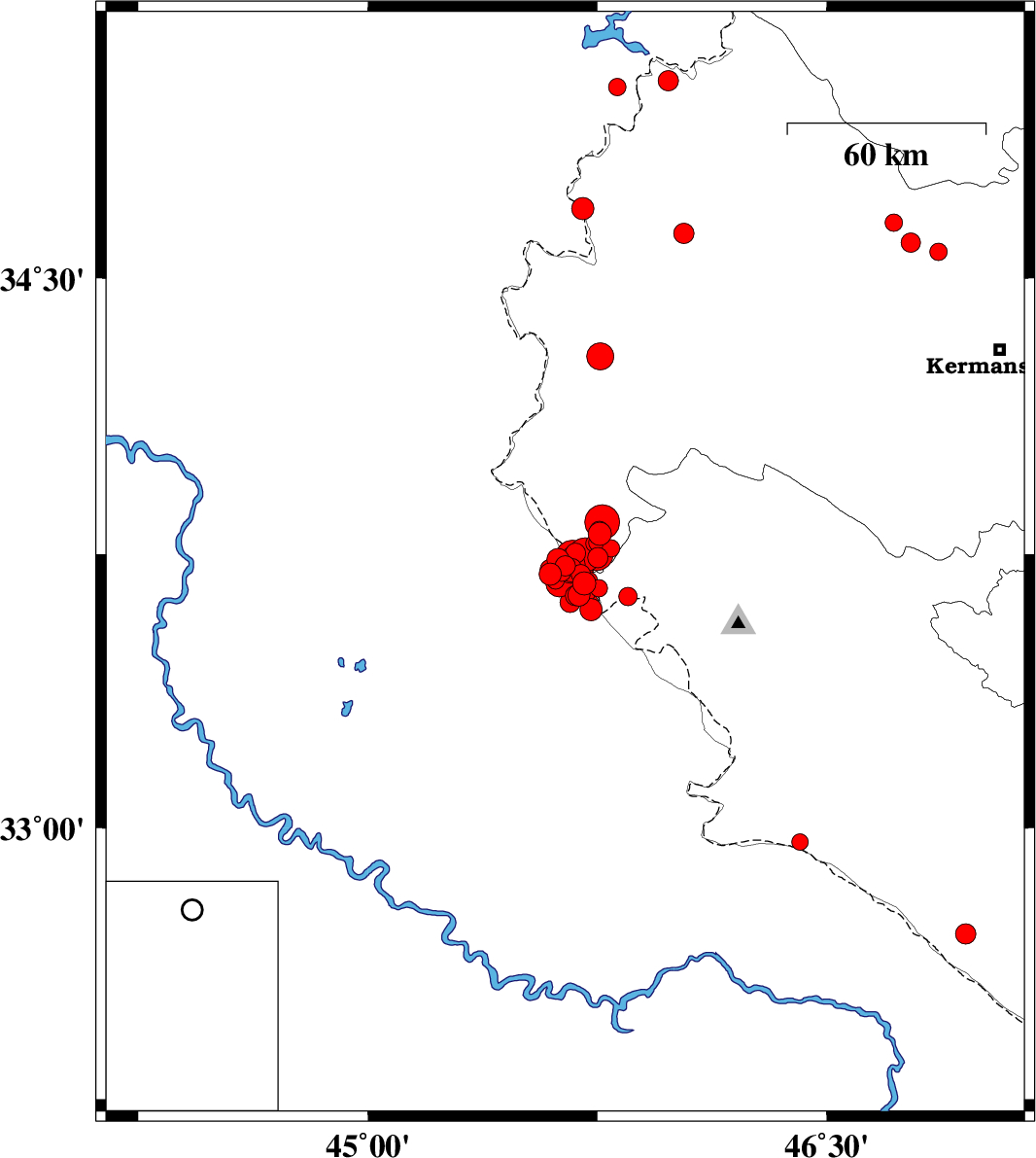 2018/01/14 | 04:13:53.4 | 07:43:53.4 | 33.766 | 45.794 | 6 | ML:2.6 | Kermanshah Province, 43 km South-West of Gilan-E-Gharb | ||