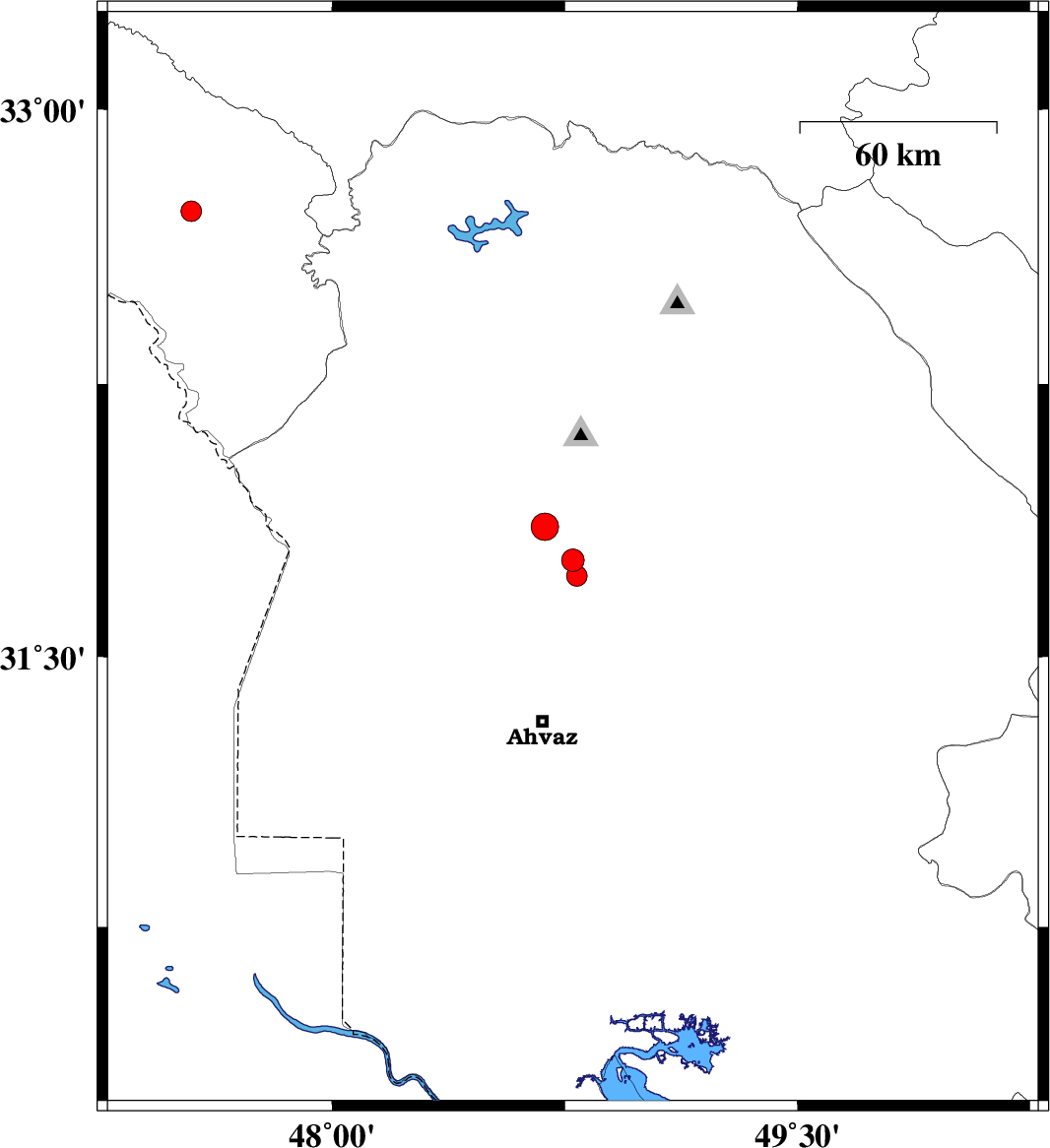 2018/01/09 23:12:55.2 02:42:55.2 31.85848.68514 ML3.9 Khoozestan Province, 26 km South-West of Shushtar