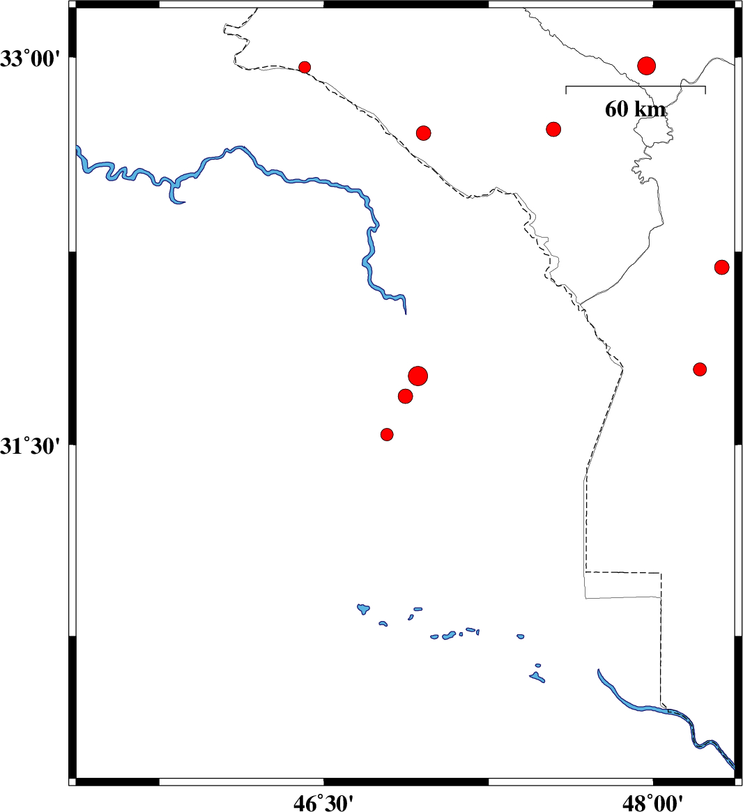 | 2018/01/15 | 14:27:47.2 | 17:57:47.2 | 31.767 | 46.928 | 15 | ML4 | Iraq | ||