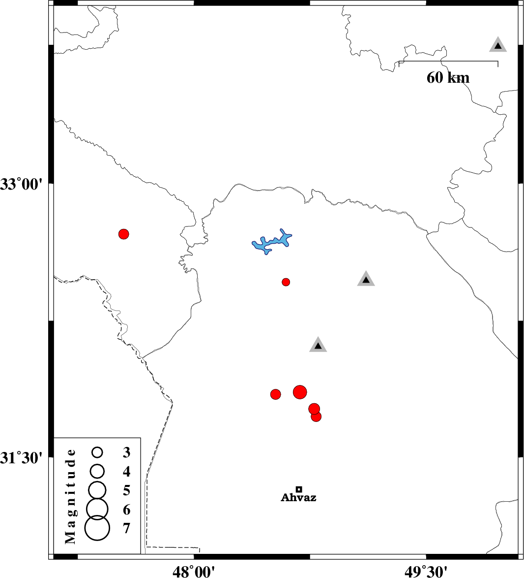 | 2018/01/16 | 15:39:41.9 | 19:09:41.9 | 32.462 | 48.594 | 15 | ML2.2 | Khoozestan Province, 23 km -East of Andimeshk | ||