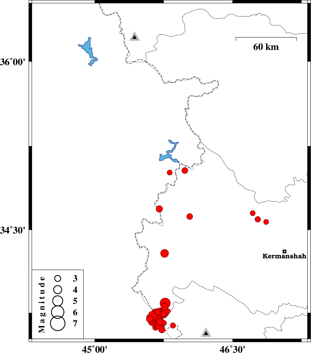 | 2018/01/09 | 13:16:28.5 | 16:46:28.5 | 34.62 | 46.032 | 15 | ML3 | Kermanshah Province, 22 km North-East of Sar-e pol-e zahab |