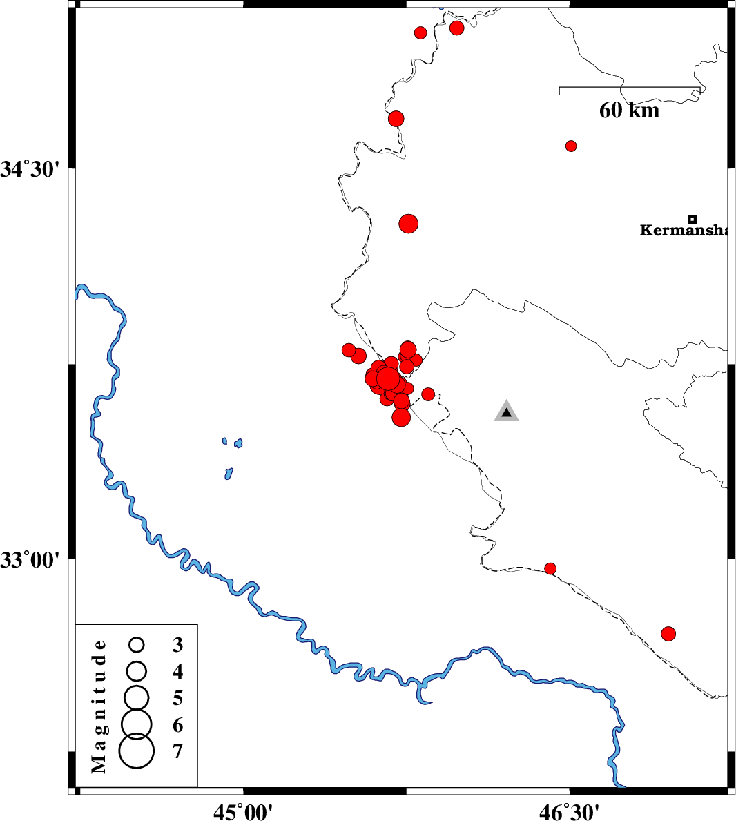 2018/01/14 | 00:44:37.1 | 04:14:37.1 | 33.782 | 45.75 | 14 | ML:2.6 | Kermanshah Province, 43 km South-West of Gilan-E-Gharb | ||