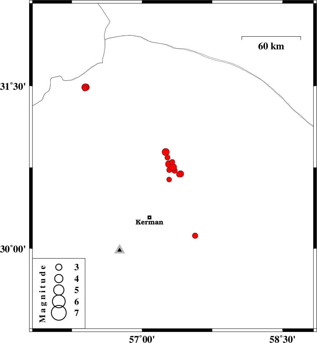 2018/01/20 04:16:03.5 07:46:03.5 30.72157.34714 ML2.7 Kerman Province, 55 km North-East of Kerman