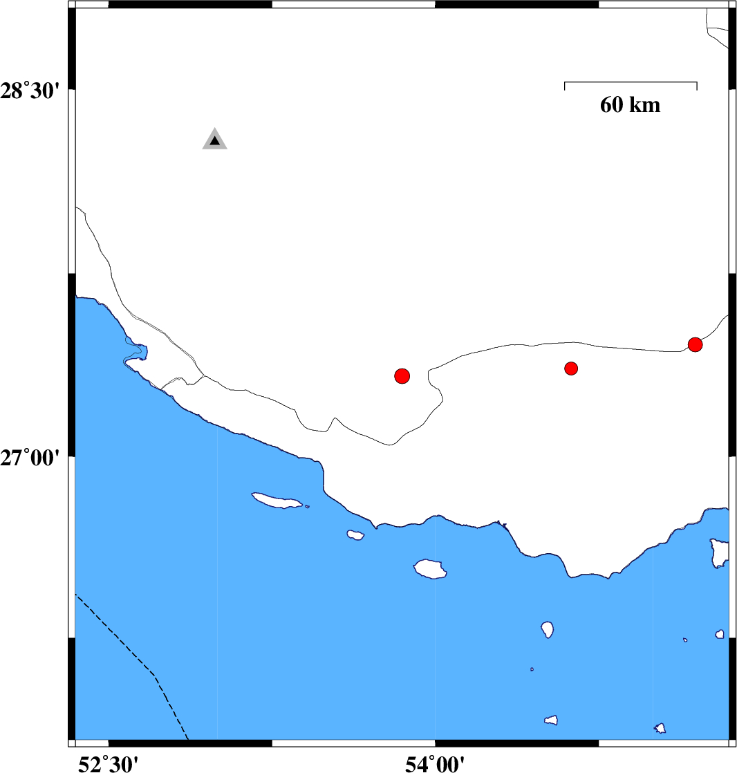 | 2018/01/16 | 20:10:34.8 | 23:40:34.8 | 27.458 | 55.193 | 14 | ML2.9 | Hormozgan Province, 88 km South-East of Lar |