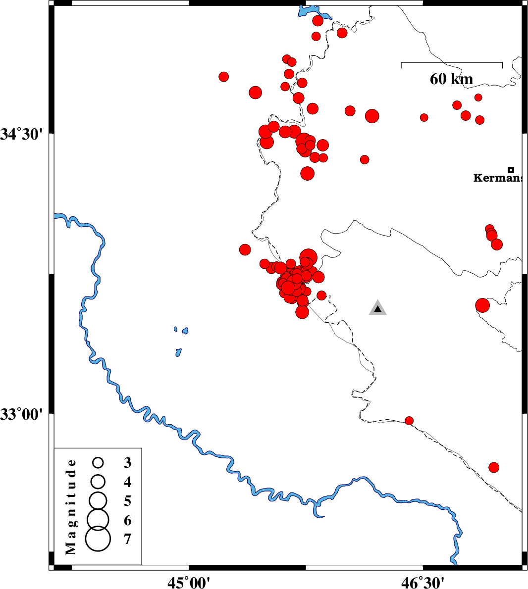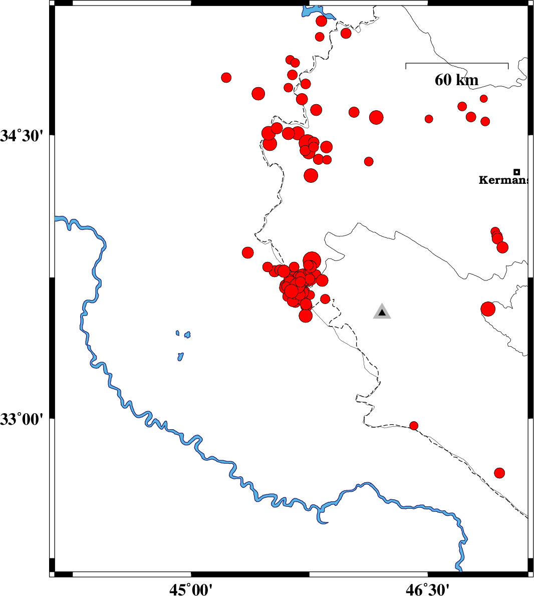 | 2018/01/04 | 08:19:11.4 | 11:49:11.4 | 33.968 | 46.938 | 14 | ML3 | Kermanshah Province, 39 km South-West of Kermanshah | ||