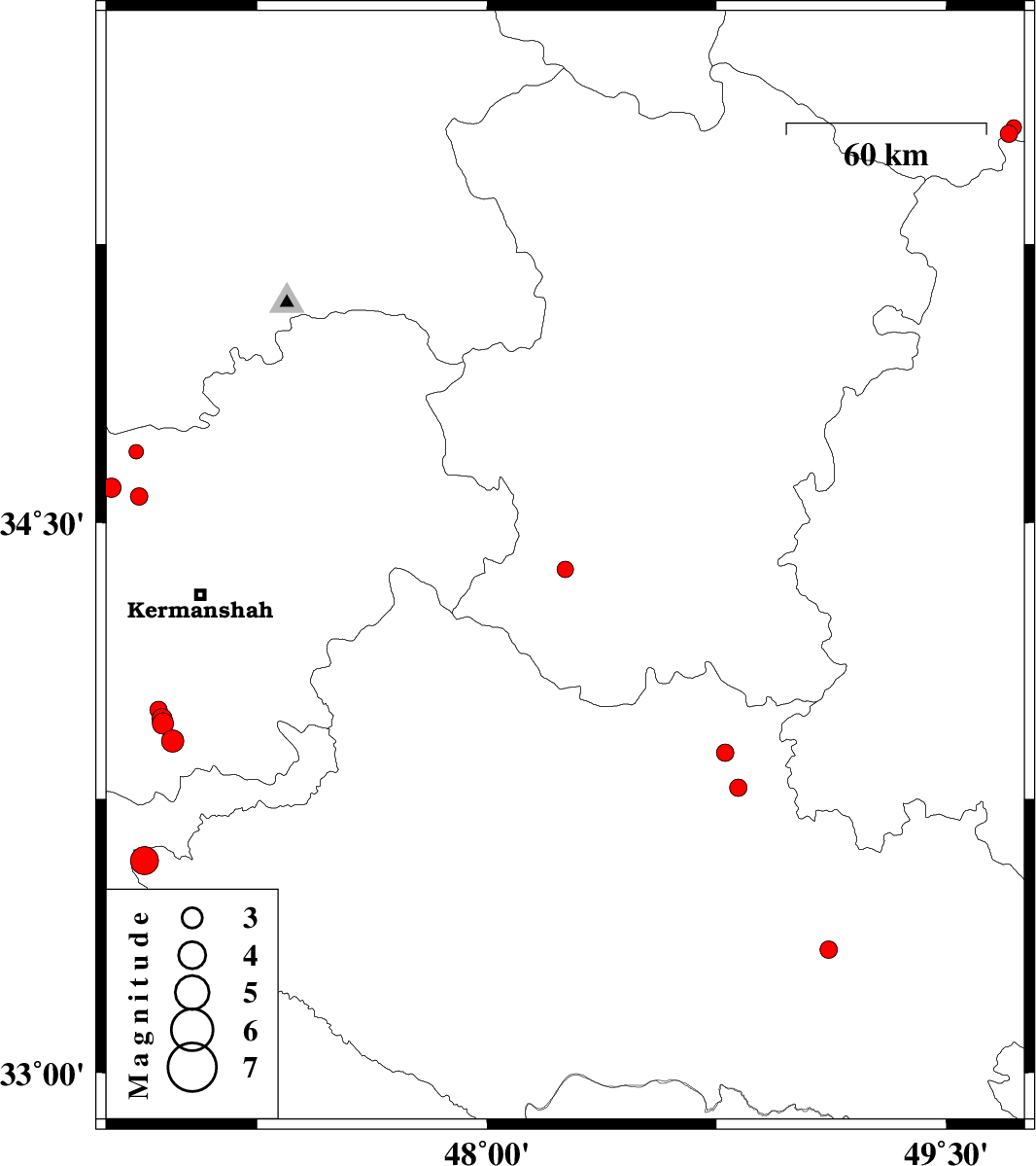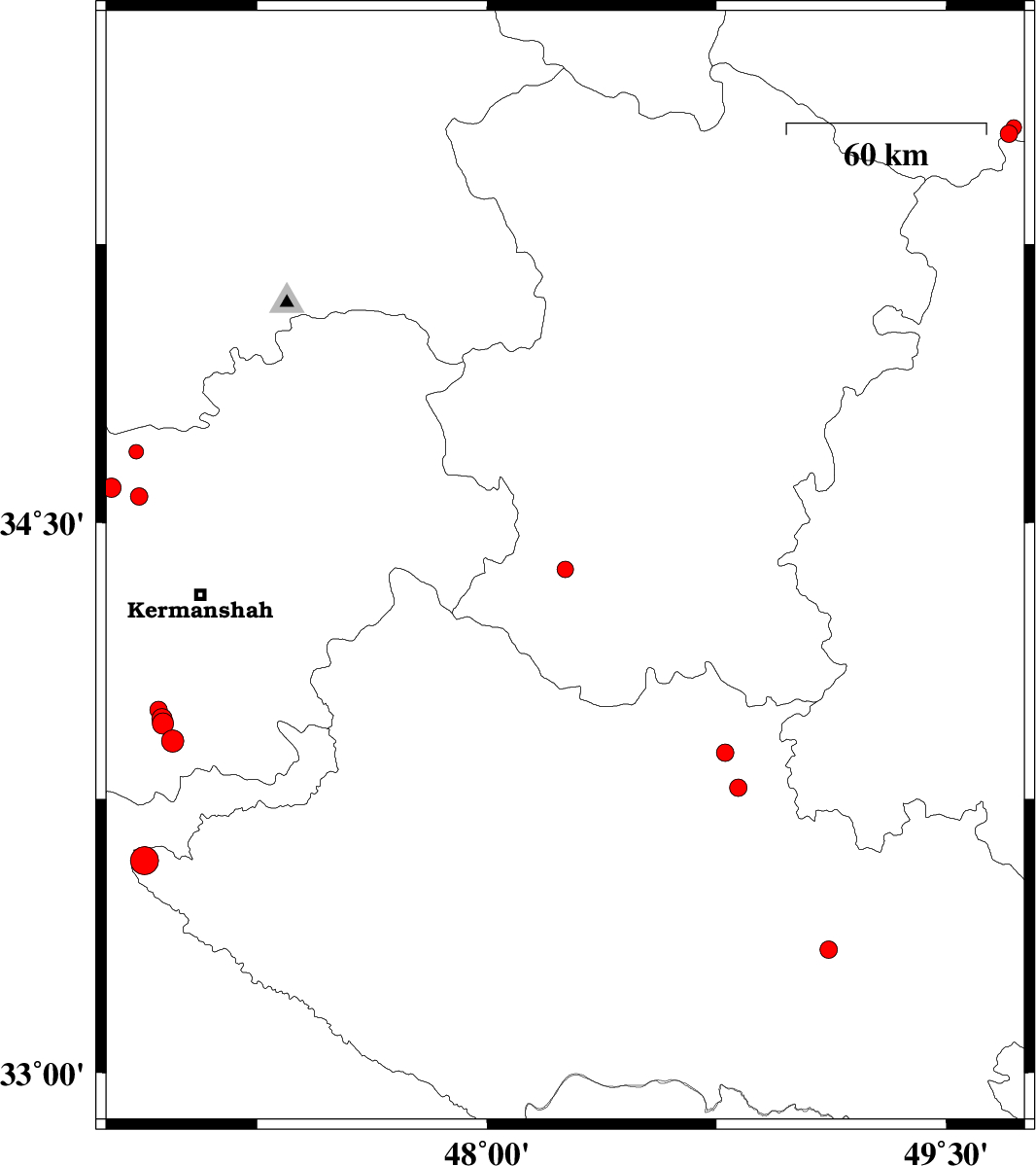 | 2018/01/04 | 08:18:38.6 | 11:48:38.6 | 33.992 | 46.927 | 14 | ML2.6 | Kermanshah Province, 37 km South-West of Kermanshah | ||
