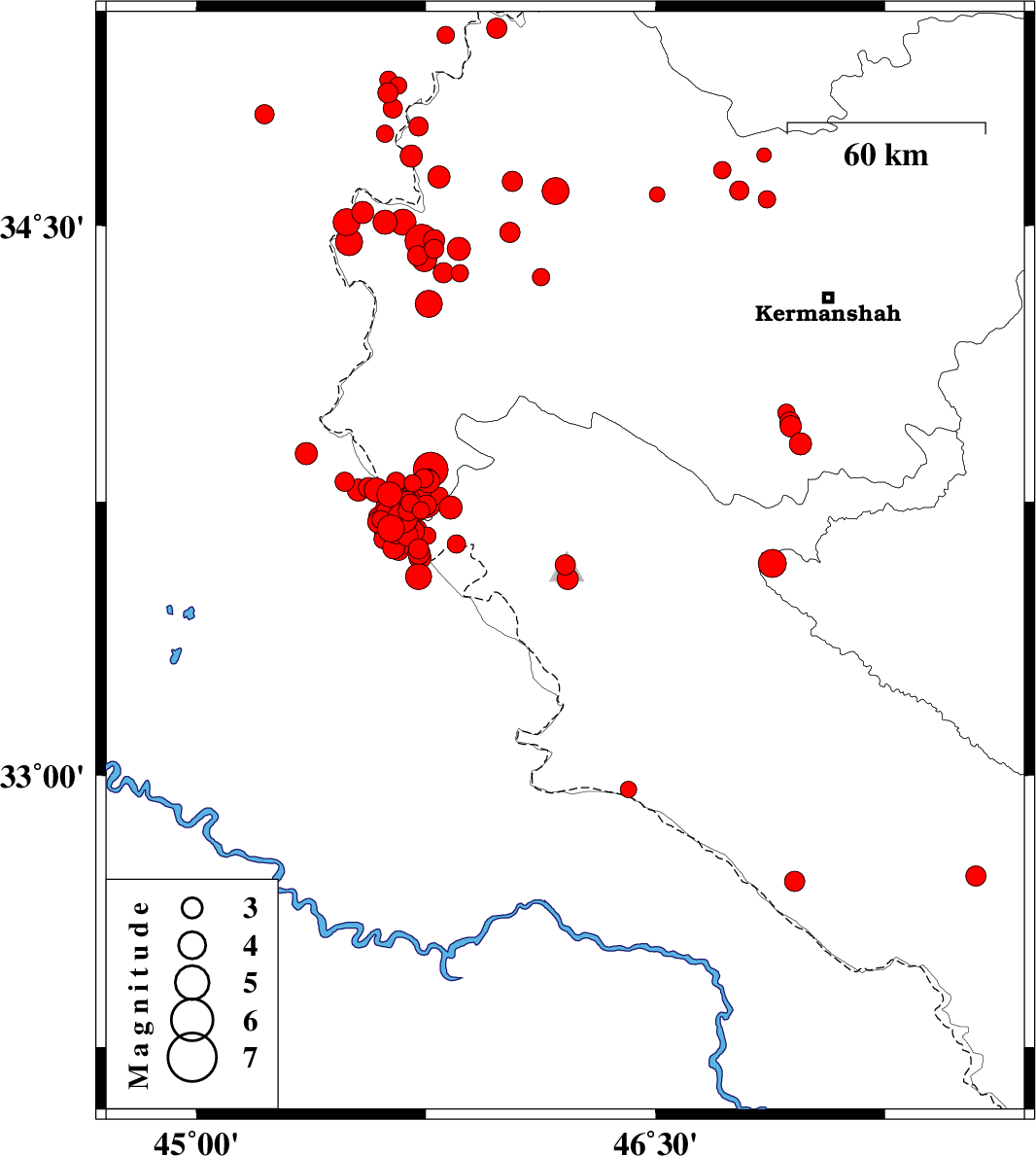 | 2018/01/21 | 02:19:36.7 | 05:49:36.7 | 34.455 | 45.499 | 14 | ML4 | Kermanshah Province, 10 km of Qasr-E-Shirin | ||
