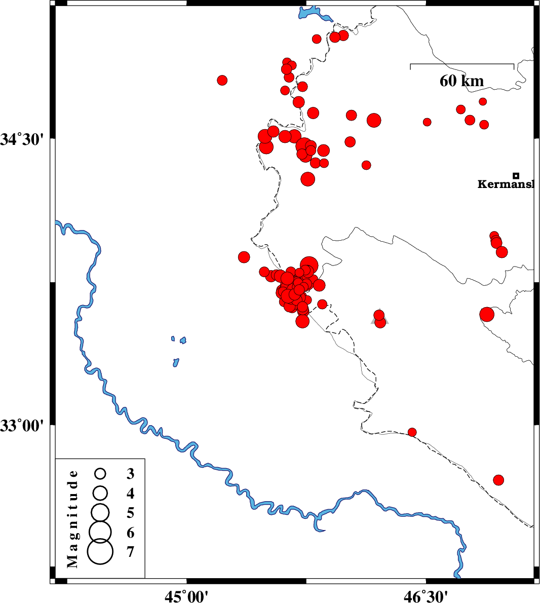 | 2018/01/04 | 08:19:11.4 | 11:49:11.4 | 33.968 | 46.938 | 14 | ML3 | Kermanshah Province, 39 km South-West of Kermanshah | ||