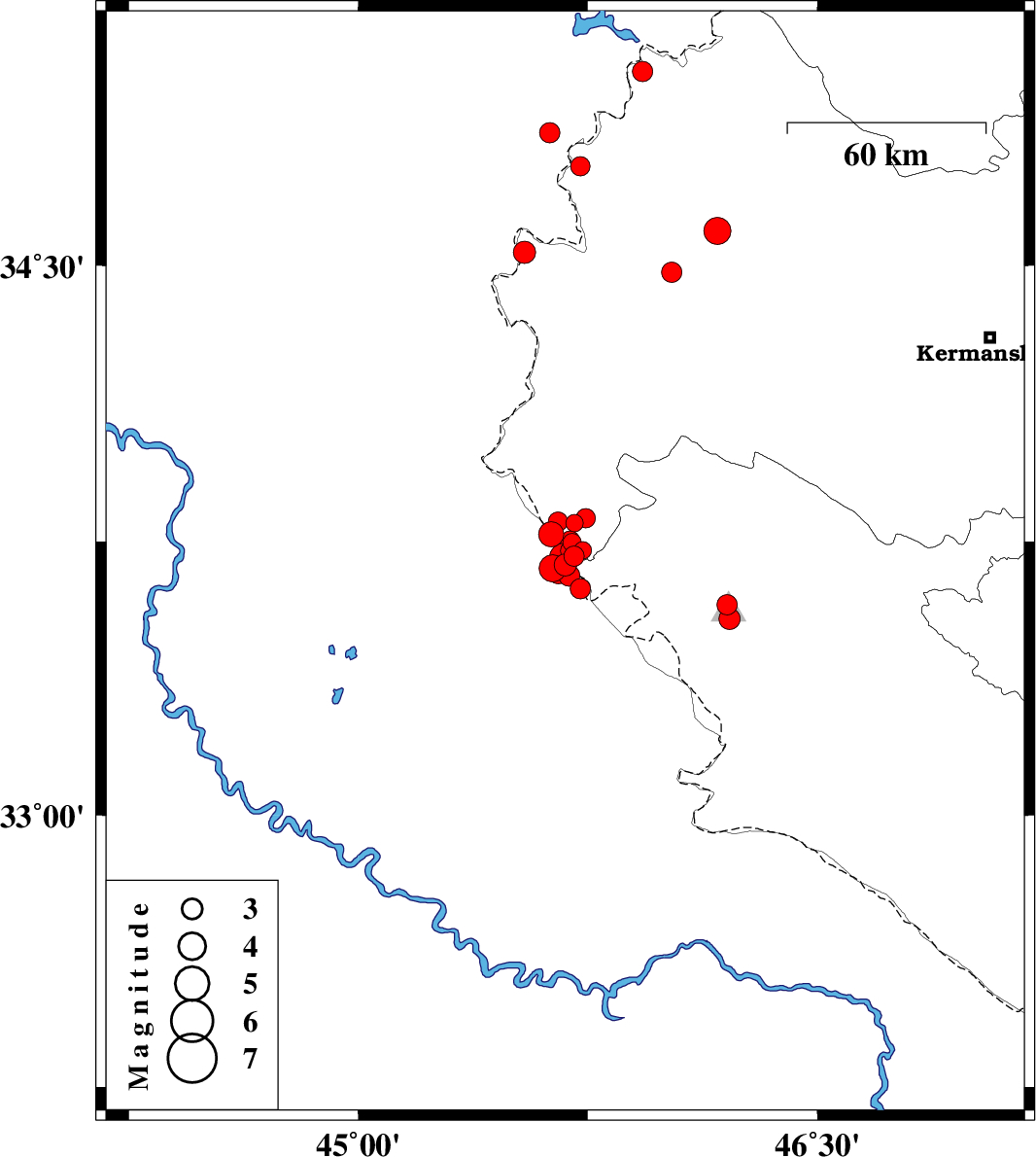 | 2018/01/24 | 05:21:14.3 | 08:51:14.3 | 33.805 | 45.653 | 14 | ML2.8 | Kermanshah Province, 45 km South-West of Gilan-E-Gharb |