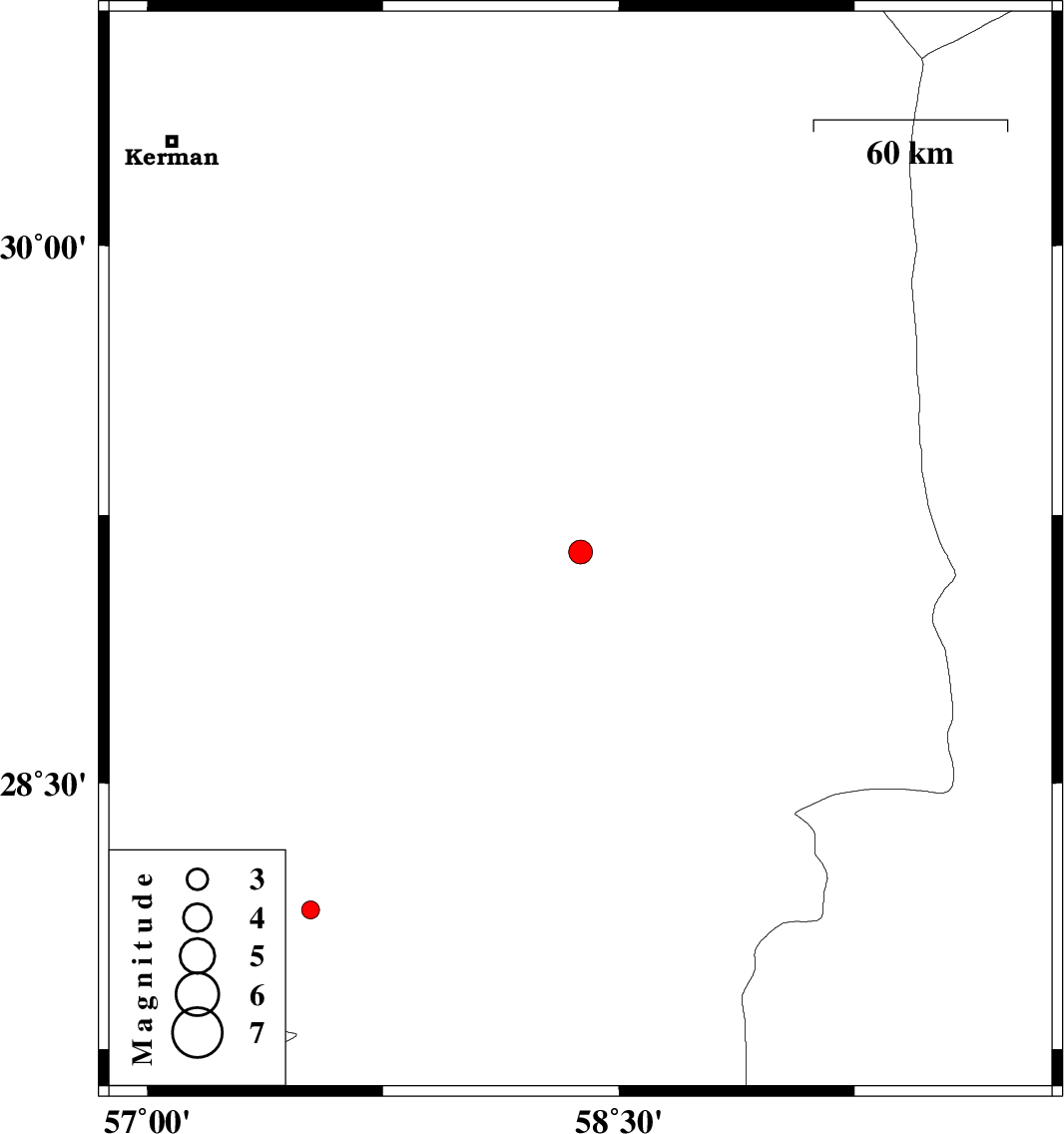 | 2018/01/28 | 23:29:32.0 | 02:59:32.0 | 28.144 | 57.52 | 14 | ML2.5 | Kerman Province, 28 km North-West of Kahnuj |