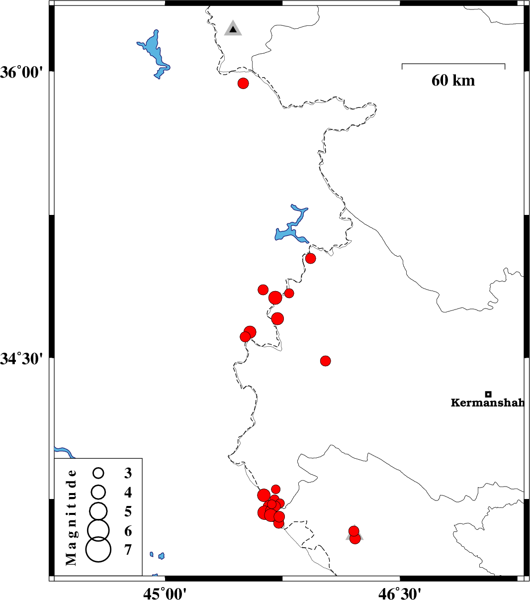 | 2018/01/31 | 13:36:09.9 | 17:06:09.9 | 33.711 | 45.704 | 18 | ML2.9 | Kermanshah Province, 52 km South-West of Gilan-E-Gharb | ||