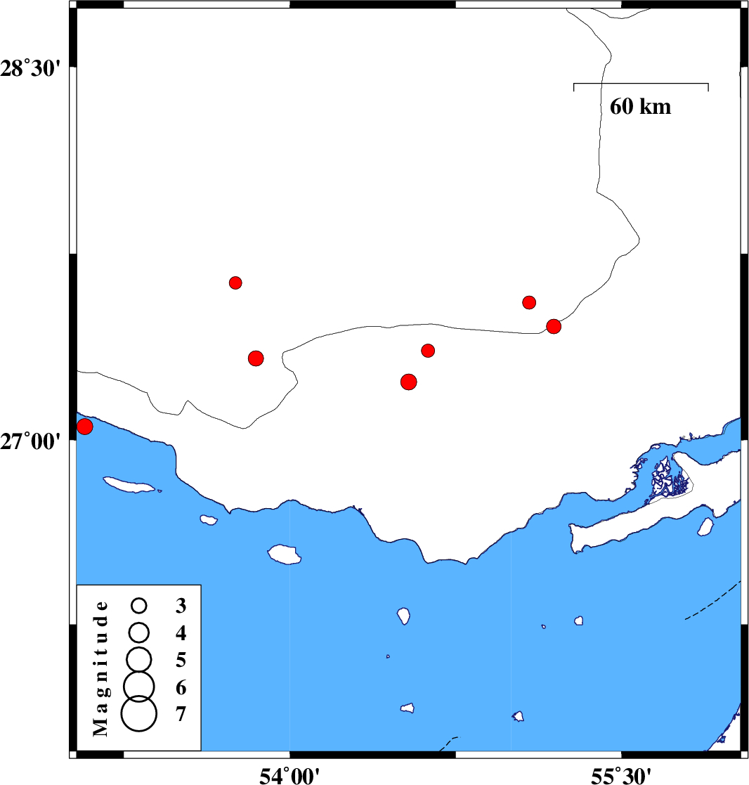| 2018/02/02 | 21:28:25.9 | 00:58:25.9 | 27.554 | 55.081 | 14 | ML2.7 | Fars Province, 74 km South-East of Lar | ||