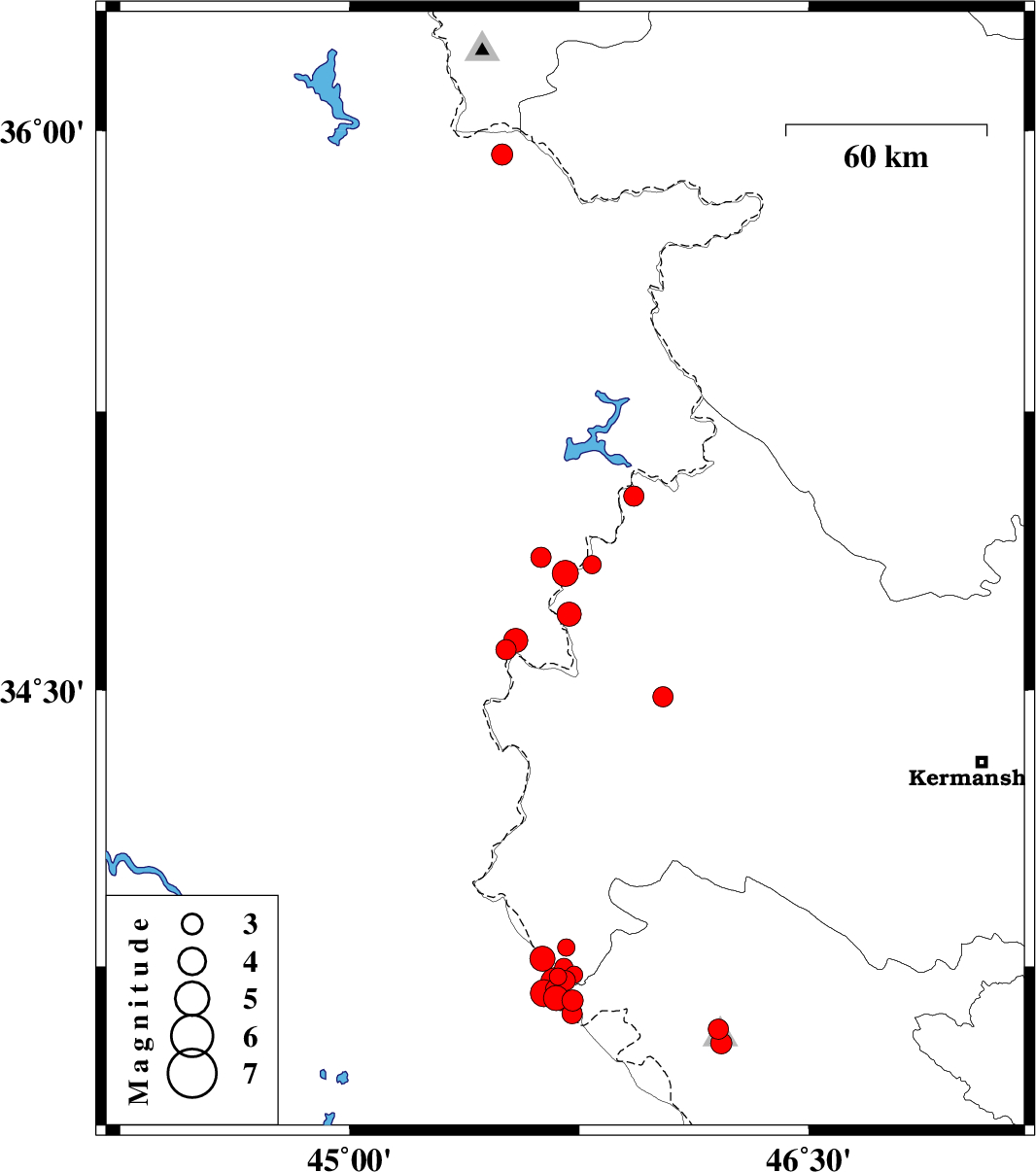 | 2018/01/31 | 04:04:05.4 | 07:34:05.4 | 33.686 | 45.676 | 16 | ML3.2 | Kermanshah Province, 55 km South-West of Gilan-E-Gharb | ||