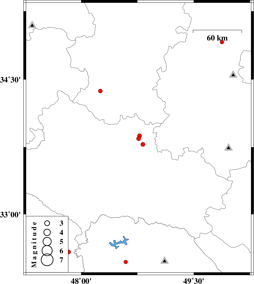 | 2018/01/04 | 04:40:17.9 | 08:10:17.9 | 33.781 | 48.822 | 9 | ML2.6 | Lorestan Province, 14 km South of Borujerd |