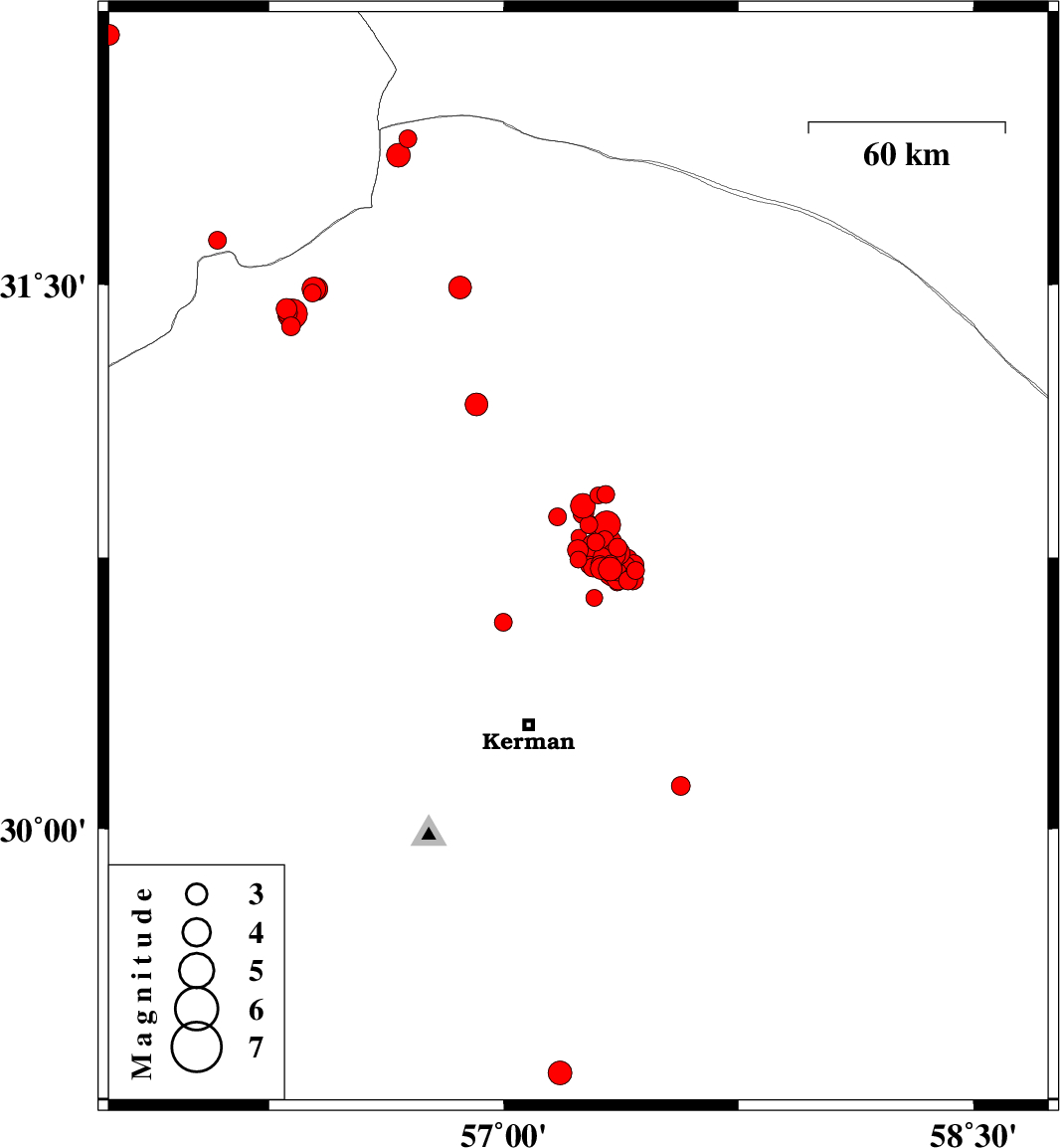 | 2018/01/04 | 13:43:16.2 | 17:13:16.2 | 30.692 | 57.41 | 14 | ML2.5 | Kerman Province, 55 km North-East of Kerman | ||