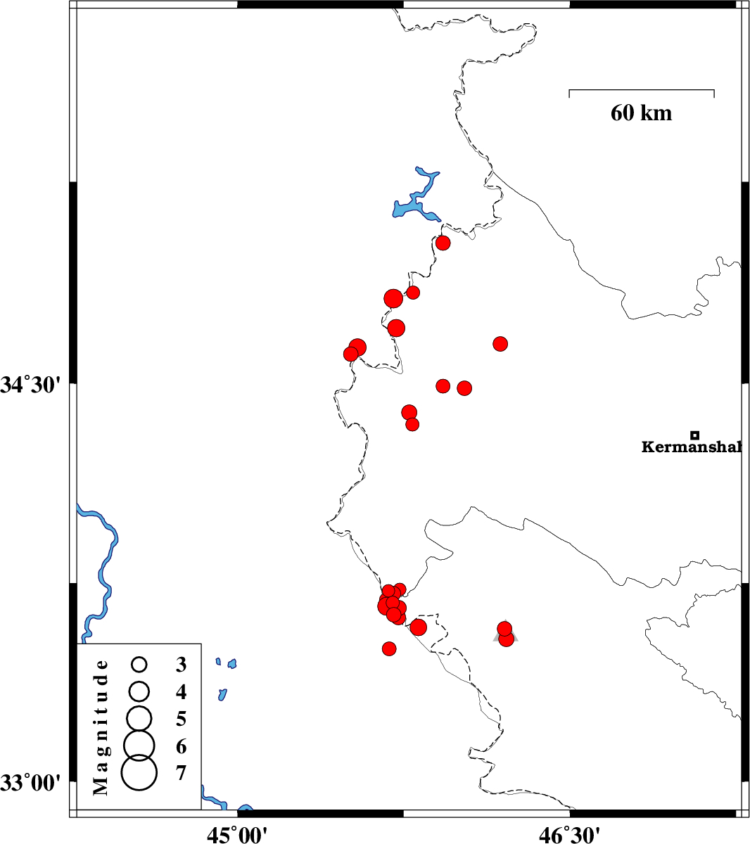| 2018/01/29 | 13:08:59.9 | 16:38:59.9 | 33.727 | 45.733 | 14 | ML2.5 | Kermanshah Province, 49 km South-West of Gilan-E-Gharb | ||