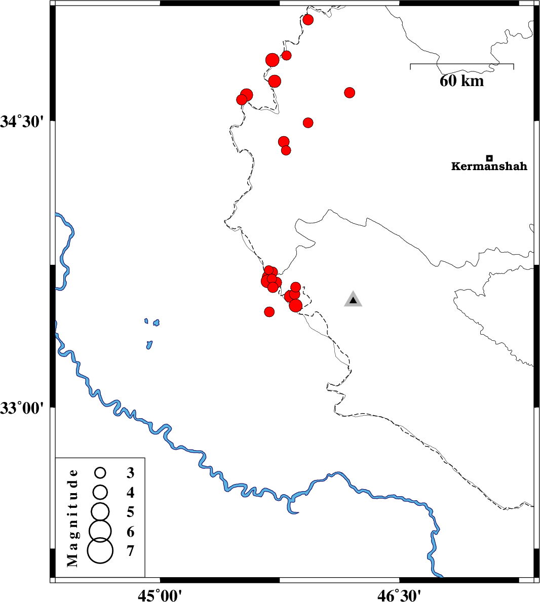 | 2018/02/06 | 03:54:41.4 | 07:24:41.4 | 33.596 | 45.843 | 14 | ML3 | Ilam Province, 61 km South of Gilan-E-Gharb | ||