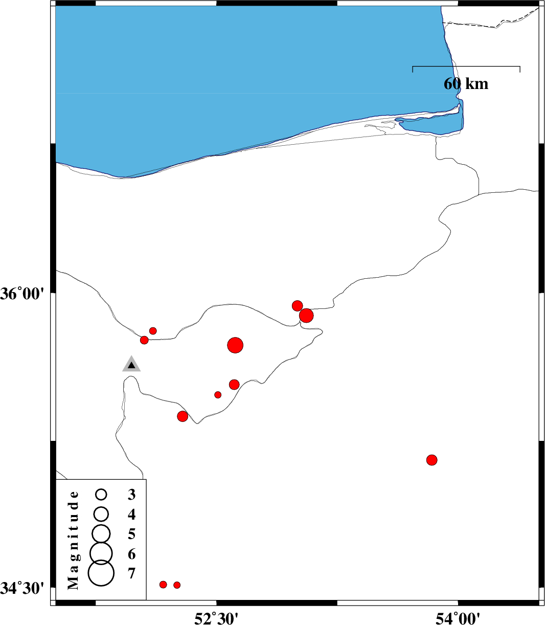 | 2018/01/10 | 07:46:46.7 | 11:16:46.7 | 35.374 | 52.29 | 15 | ML3 | Semnan Province, 18 km North of Garmsar |