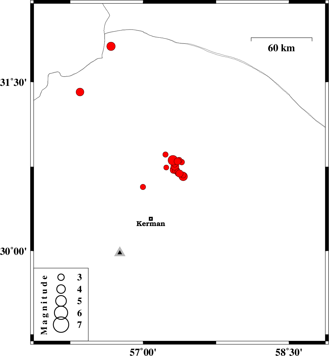| 2018/02/01 | 15:19:24.2 | 18:49:24.2 | 30.571 | 56.998 | 7 | ML2.5 | Kerman Province, 32 km North of Kerman | ||