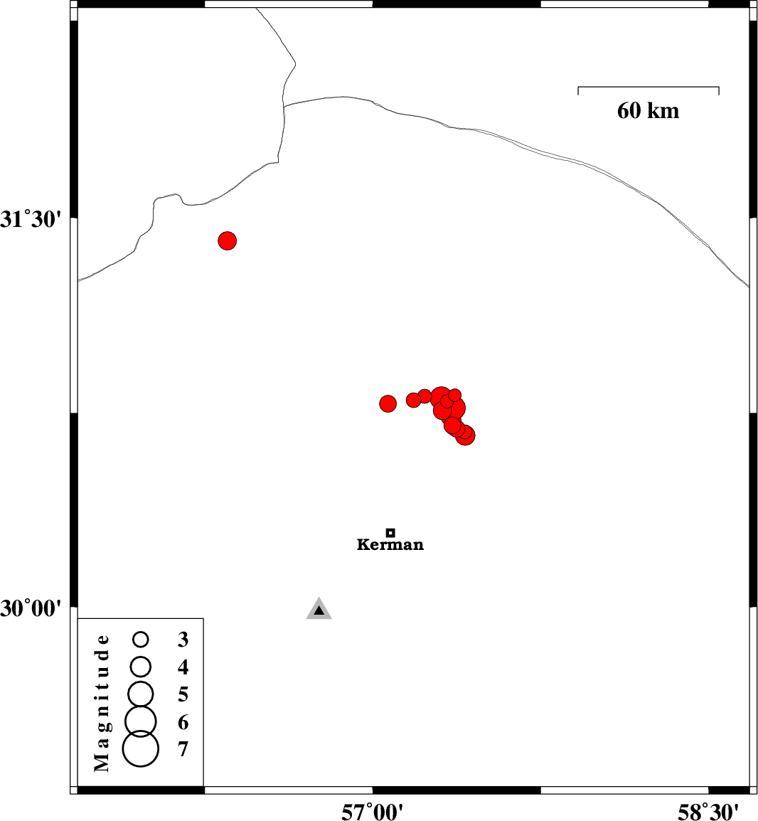 | 2018/02/12 | 01:17:19.2 | 04:47:19.2 | 30.8 | 57.182 | 14 | ML2.9 | Kerman Province, 58 km North-East of Kerman | ||