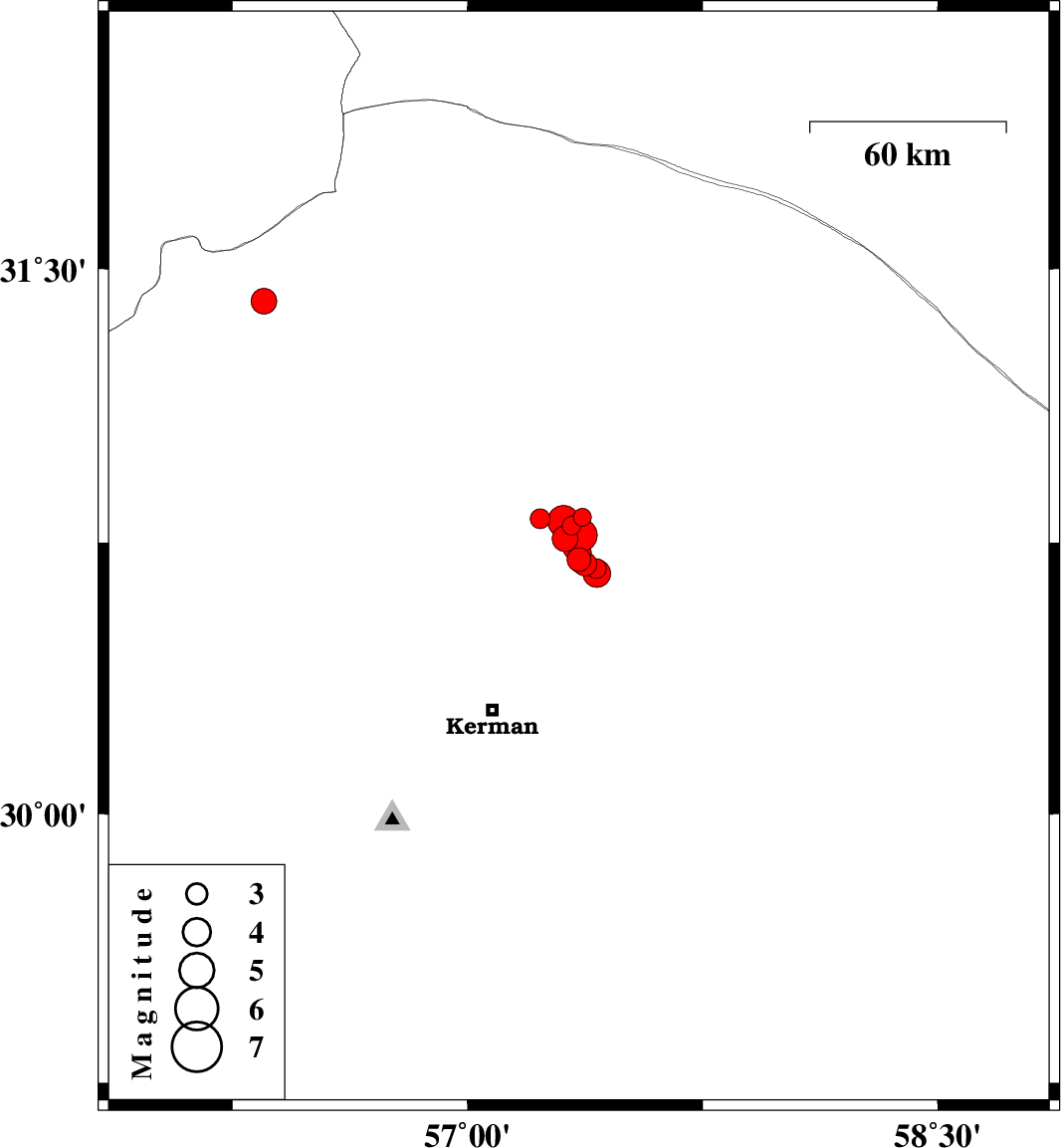 | 2018/02/04 | 16:54:00.9 | 20:24:00.9 | 30.773 | 57.325 | 14 | ML2.7 | Kerman Province, 59 km North-East of Kerman |