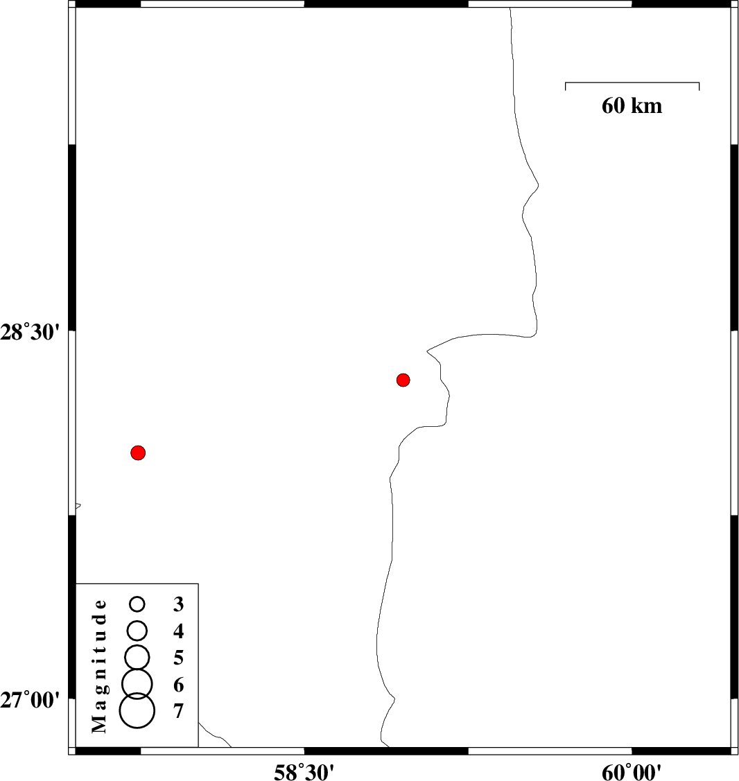 | 2018/02/08 | 16:20:55.4 | 19:50:55.4 | 28.004 | 57.738 | 18 | ML2.9 | Kerman Province, 7 km of Kahnuj |