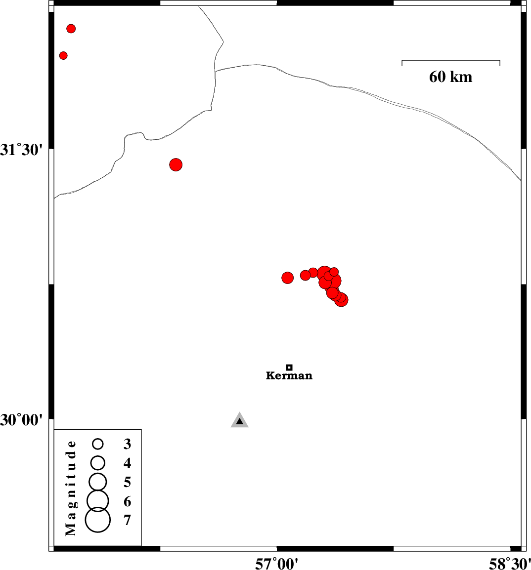 | 2018/02/12 | 16:49:37.4 | 20:19:37.4 | 30.786 | 57.068 | 14 | ML3.4 | Kerman Province, 55 km North of Kerman | ||