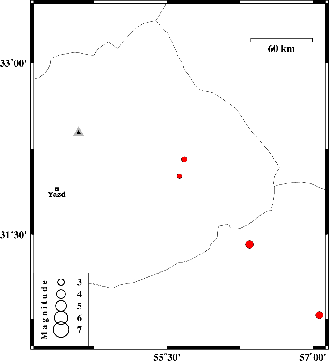 | 2018/02/06 | 05:43:05.8 | 09:13:05.8 | 31.412 | 56.35 | 14 | ML3.6 | Kerman Province, 47 km North-West of Ravar |
