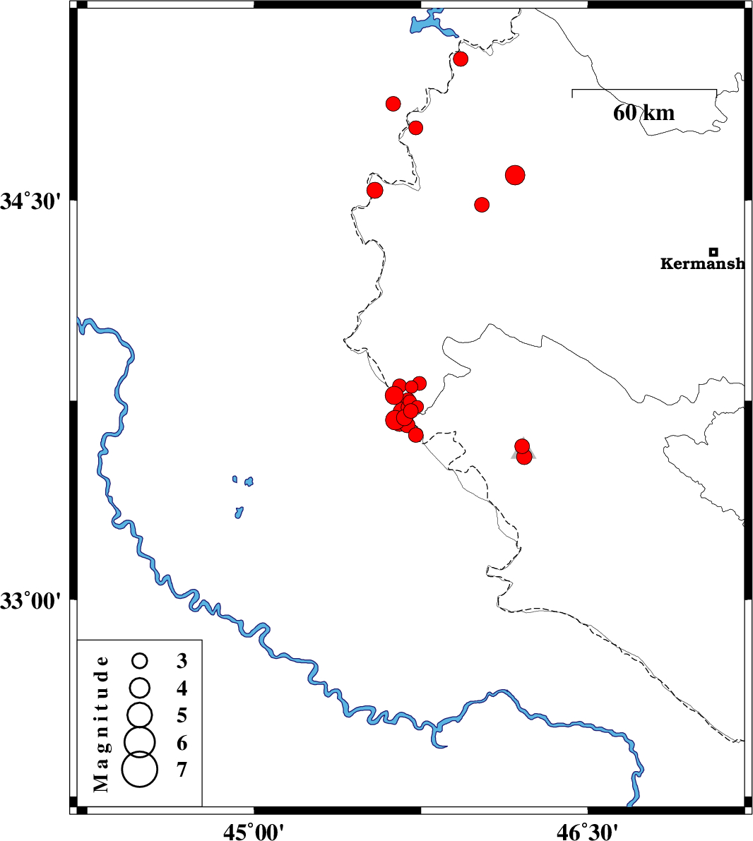 | 2018/01/24 | 05:21:14.3 | 08:51:14.3 | 33.805 | 45.653 | 14 | ML2.8 | Kermanshah Province, 45 km South-West of Gilan-E-Gharb |