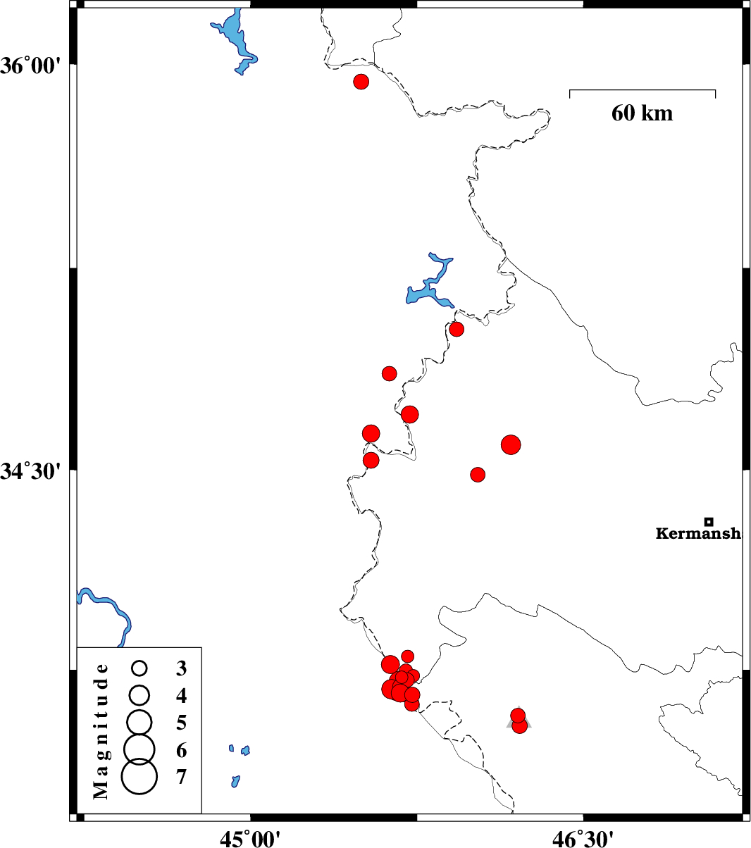 | 2018/01/25 | 03:19:14.4 | 06:49:14.4 | 34.593 | 46.173 | 15 | ML4 | Kermanshah Province, 30 km North-East of Sar-e pol-e zahab |
