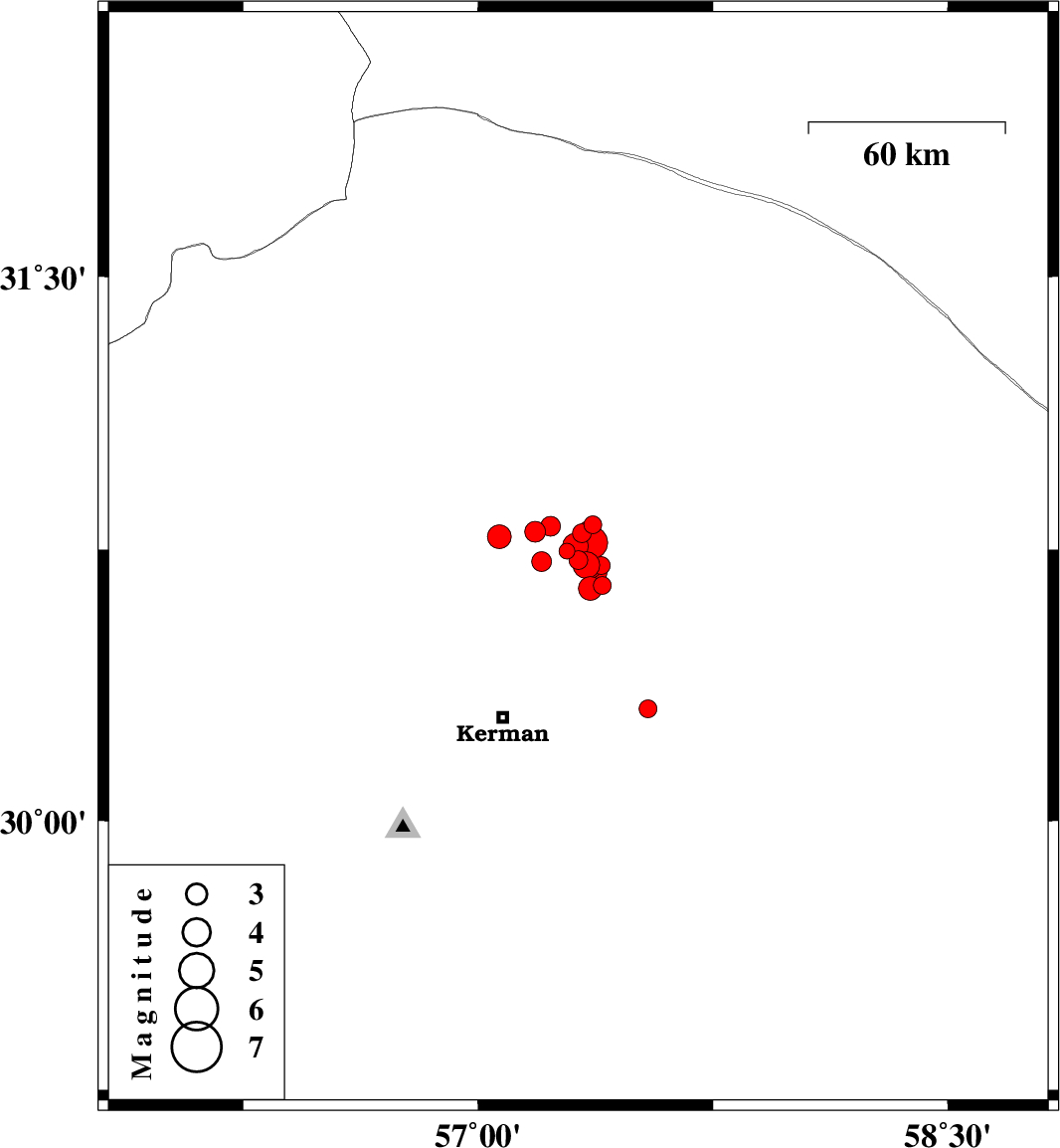 | 2018/02/12 | 16:49:37.4 | 20:19:37.4 | 30.786 | 57.068 | 14 | ML3.4 | Kerman Province, 55 km North of Kerman | ||