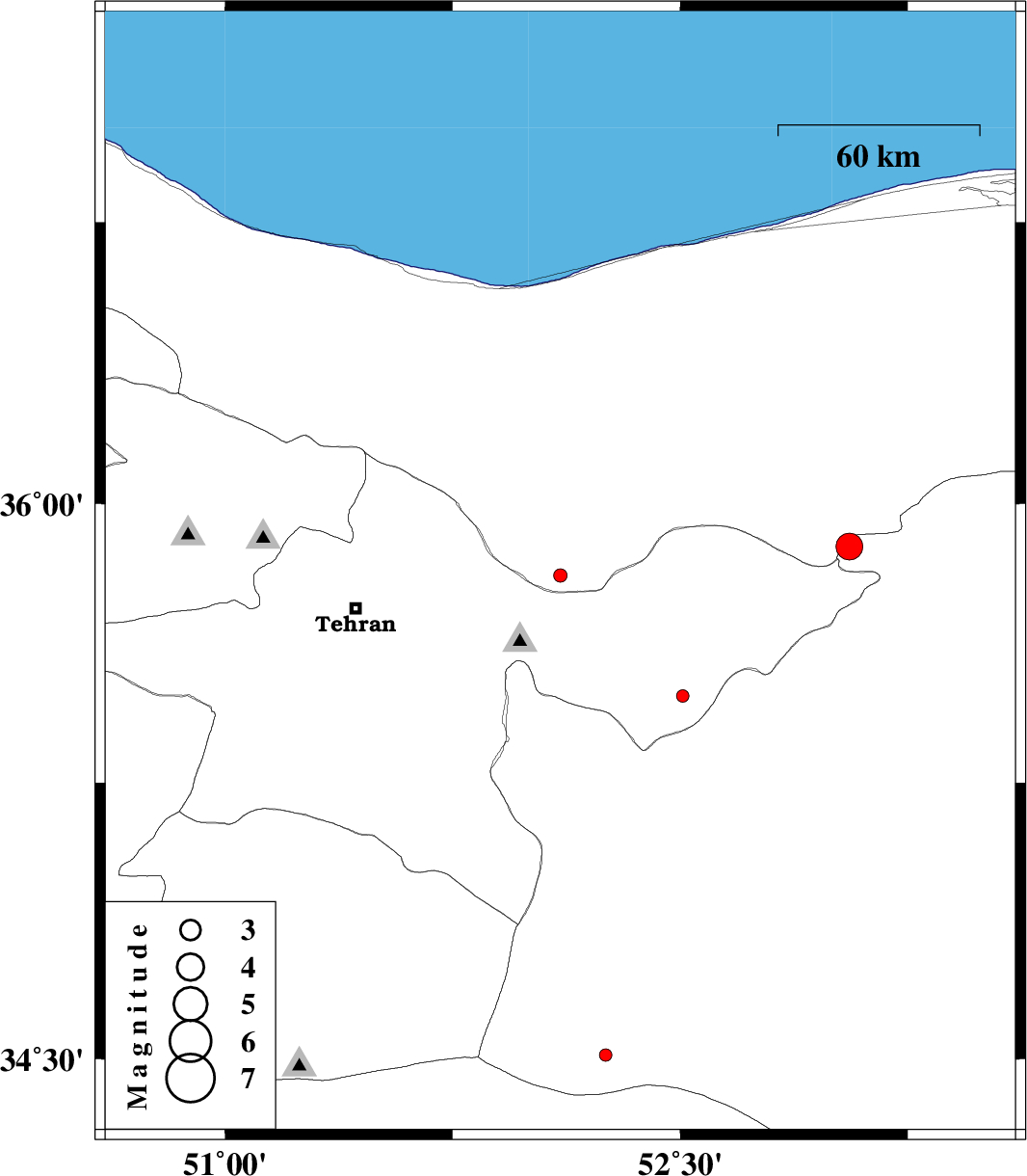 | 2018/01/30 | 13:37:14.6 | 17:07:14.6 | 35.808 | 52.105 | 7 | ML2 | Mazandaran Province, 11 km of Damavand | ||