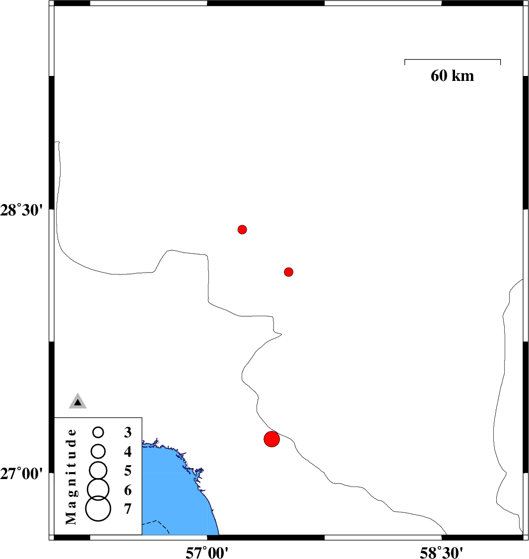 | 2018/01/28 | 23:29:32.0 | 02:59:32.0 | 28.144 | 57.52 | 14 | ML2.5 | Kerman Province, 28 km North-West of Kahnuj | ||