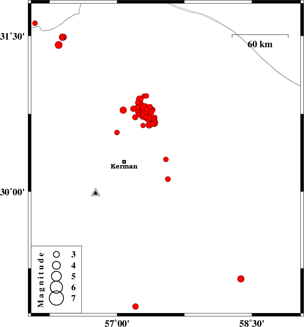 | 2018/01/28 | 05:59:54.8 | 09:29:54.8 | 30.715 | 57.42 | 14 | ML2.5 | Kerman Province, 58 km North-East of Kerman | ||