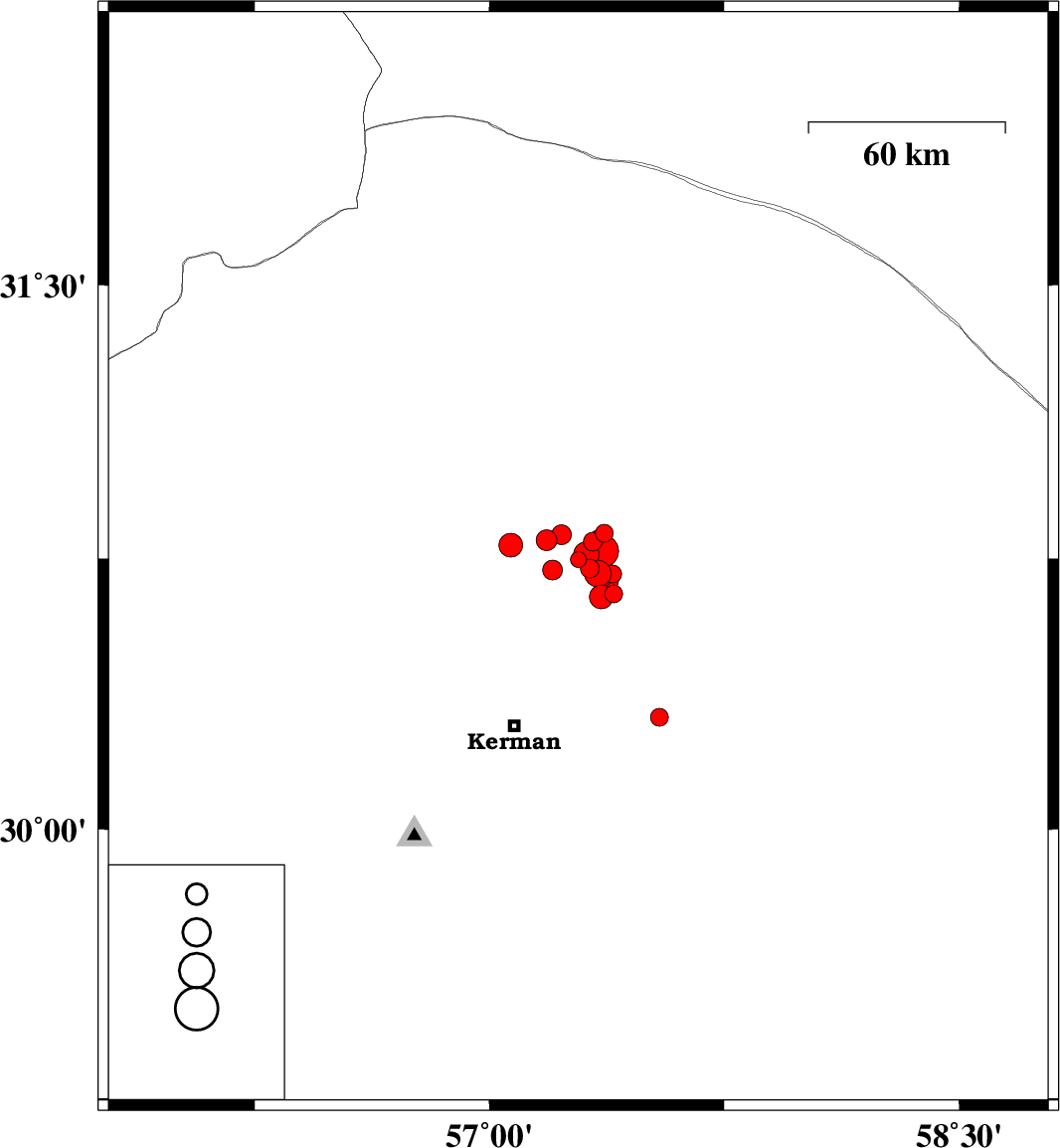 | 2018/02/12 | 16:49:37.4 | 20:19:37.4 | 30.786 | 57.068 | 14 | ML3.4 | Kerman Province, 55 km North of Kerman | ||