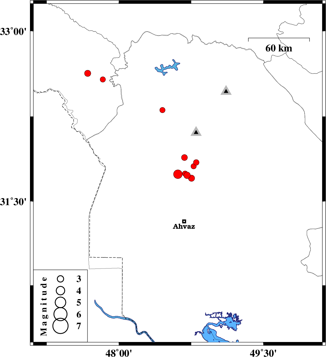 | 2018/02/16 | 12:14:03.1 | 15:44:03.1 | 31.845 | 48.803 | 15 | ML2.7 | Khoozestan Province, 22 km South of Shushtar | ||