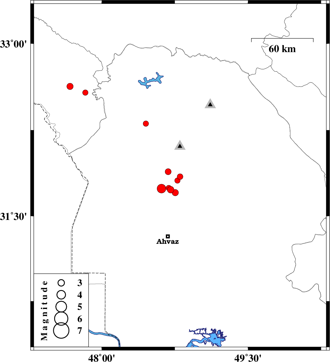 | 2018/02/01 | 02:46:10.1 | 06:16:10.1 | 31.705 | 48.754 | 15 | ML2.9 | Khoozestan Province, 39 km South of Shushtar | ||