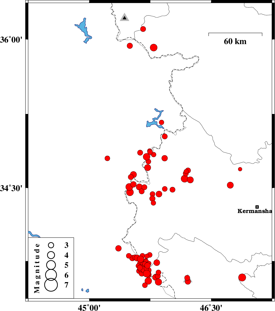 | 2018/01/21 | 02:19:36.7 | 05:49:36.7 | 34.455 | 45.499 | 14 | ML4 | Kermanshah Province, 10 km of Qasr-E-Shirin | ||