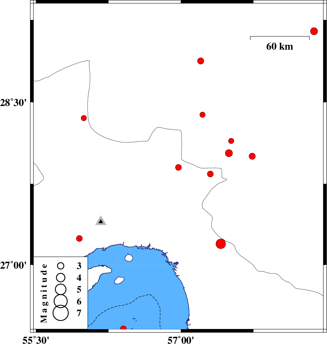| 2018/01/23 | 04:33:20.4 | 08:03:20.4 | 26.402 | 56.405 | 6 | ML3 | Persian Gulf, 63 km South-East of Qeshm | ||