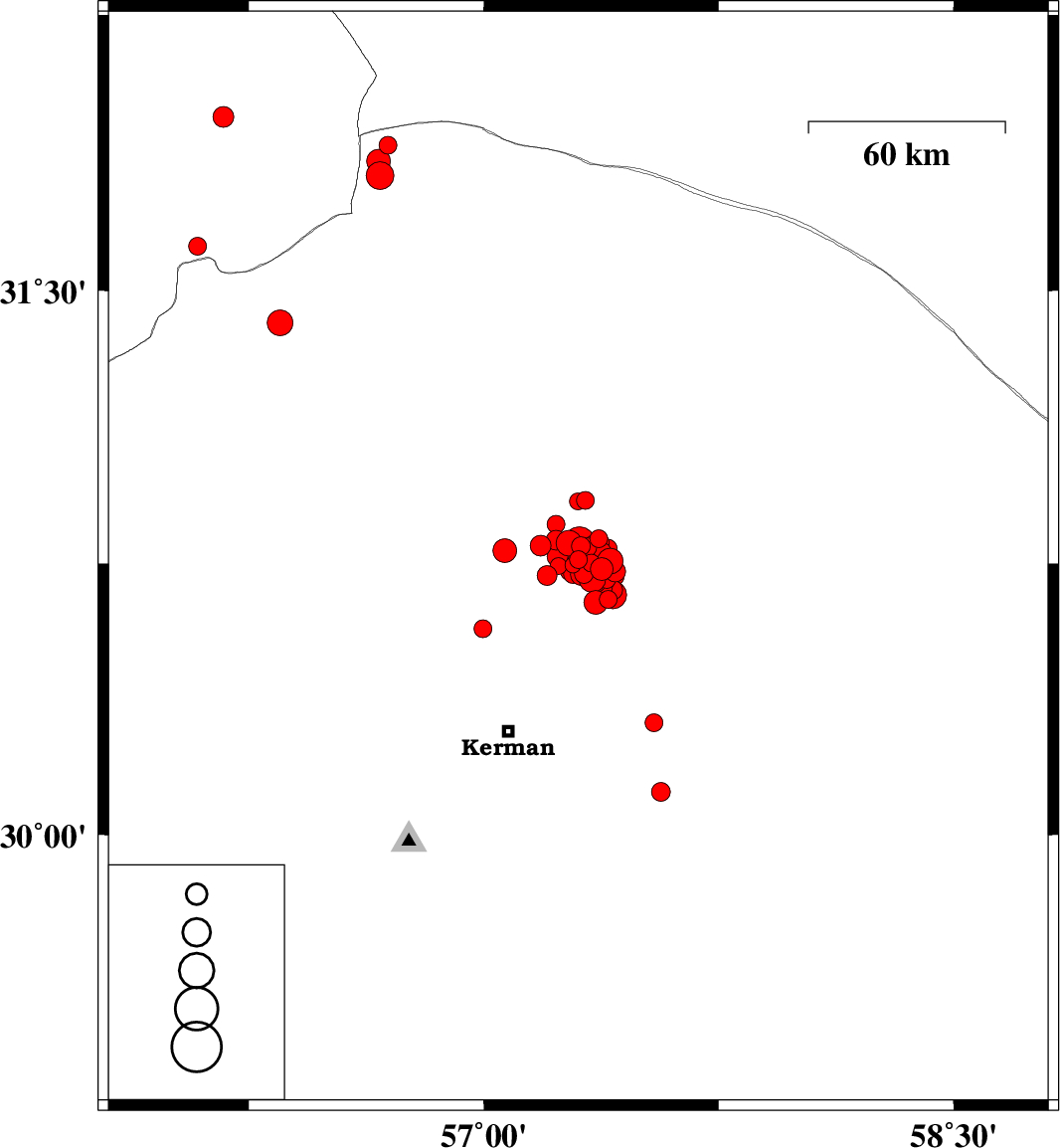 | 2018/01/28 | 05:59:54.8 | 09:29:54.8 | 30.715 | 57.42 | 14 | ML2.5 | Kerman Province, 58 km North-East of Kerman | ||