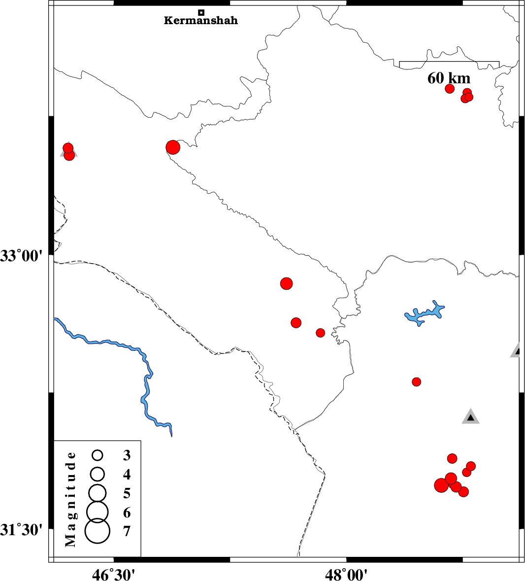 | 2018/02/19 | 04:34:33.7 | 08:04:33.7 | 32.844 | 47.613 | 14 | ML3.5 | Ilam Province, 17 km -East of Abdanan | ||