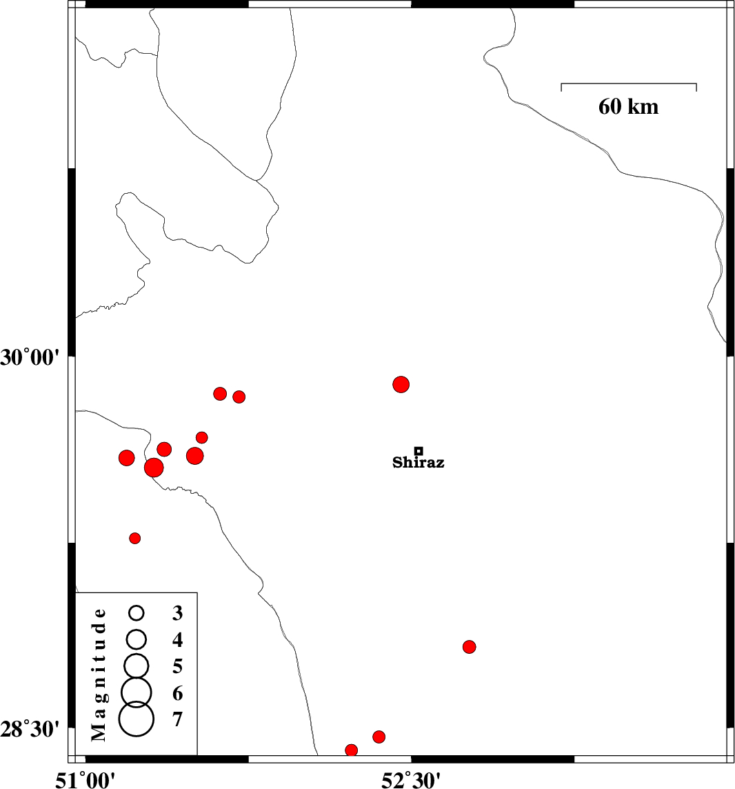 | 2018/01/29 | 07:08:42.9 | 10:38:42.9 | 28.828 | 52.766 | 14 | ML2.7 | Fars Province, 17 km -East of Firuz Abad | ||