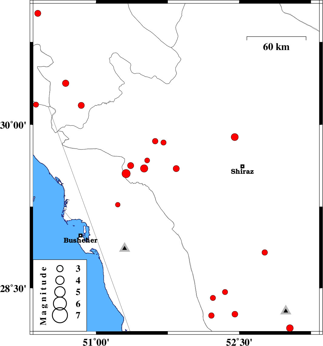 | 2018/01/29 | 07:08:42.9 | 10:38:42.9 | 28.828 | 52.766 | 14 | ML2.7 | Fars Province, 17 km -East of Firuz Abad | ||