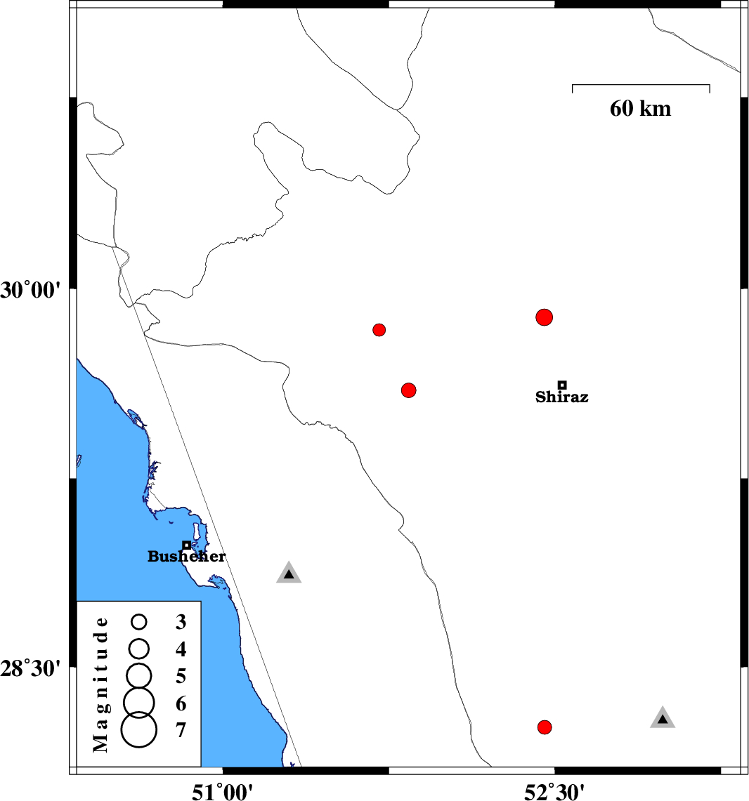 | 2018/02/18 | 02:12:07.4 | 05:42:07.4 | 29.837 | 51.706 | 6 | ML2.6 | Fars Province, 25 km North of Kazerun |