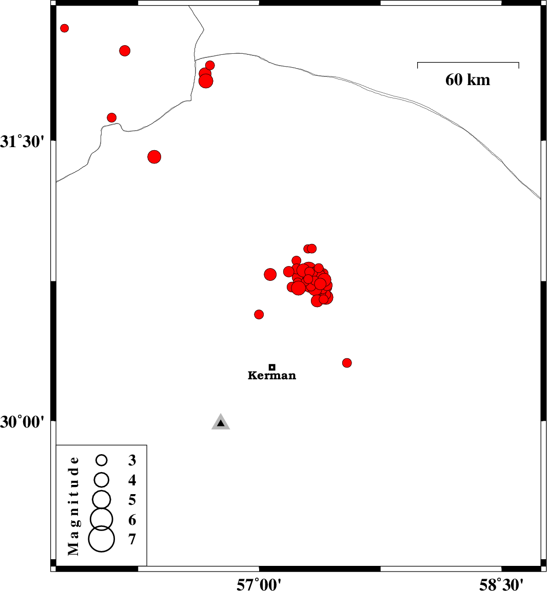 | 2018/01/24 | 16:02:01.2 | 19:32:01.2 | 30.751 | 57.356 | 17 | ML3 | Kerman Province, 58 km North-East of Kerman |