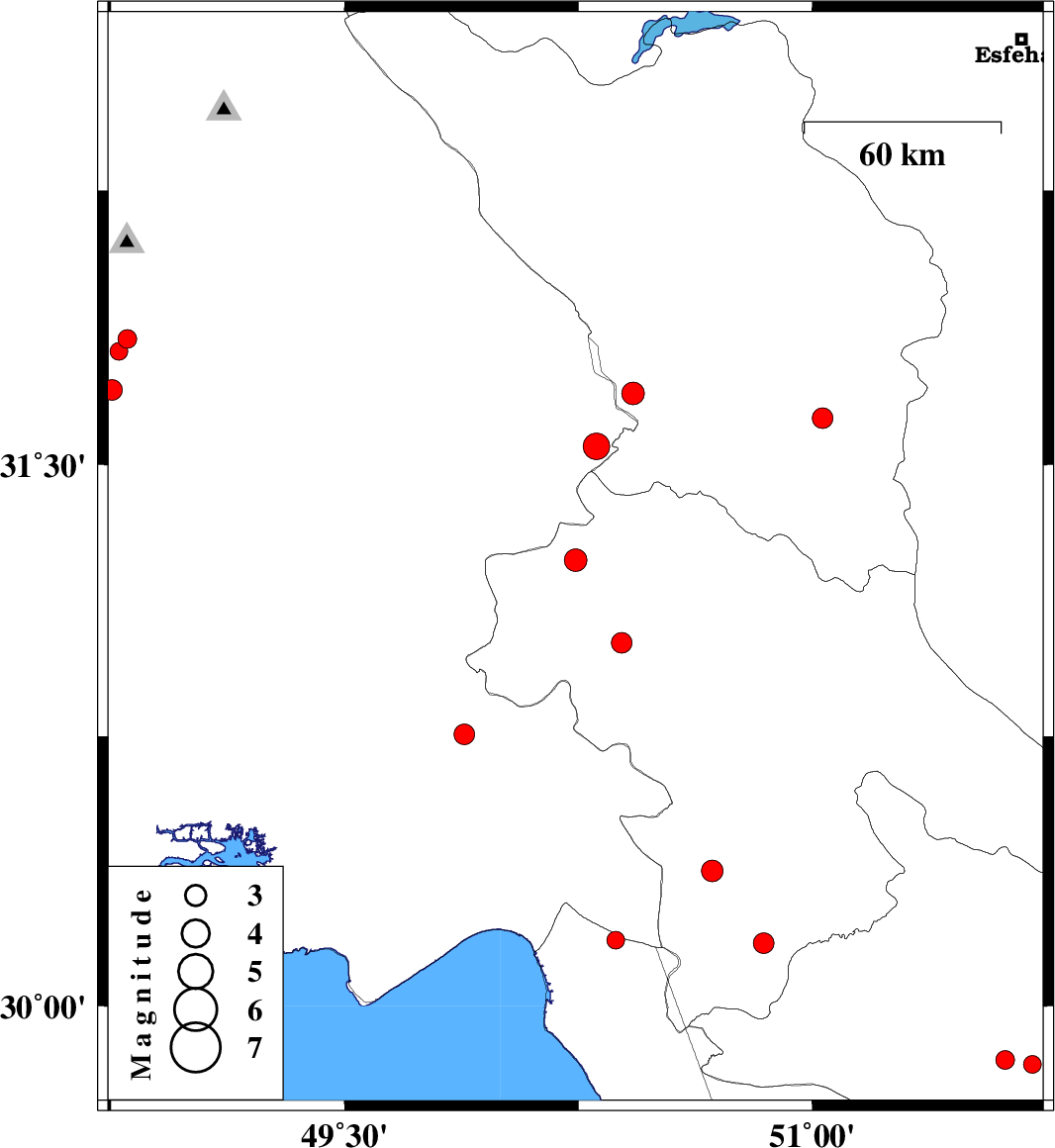 | 2018/02/01 | 02:46:10.1 | 06:16:10.1 | 31.705 | 48.754 | 15 | ML2.9 | Khoozestan Province, 39 km South of Shushtar | ||