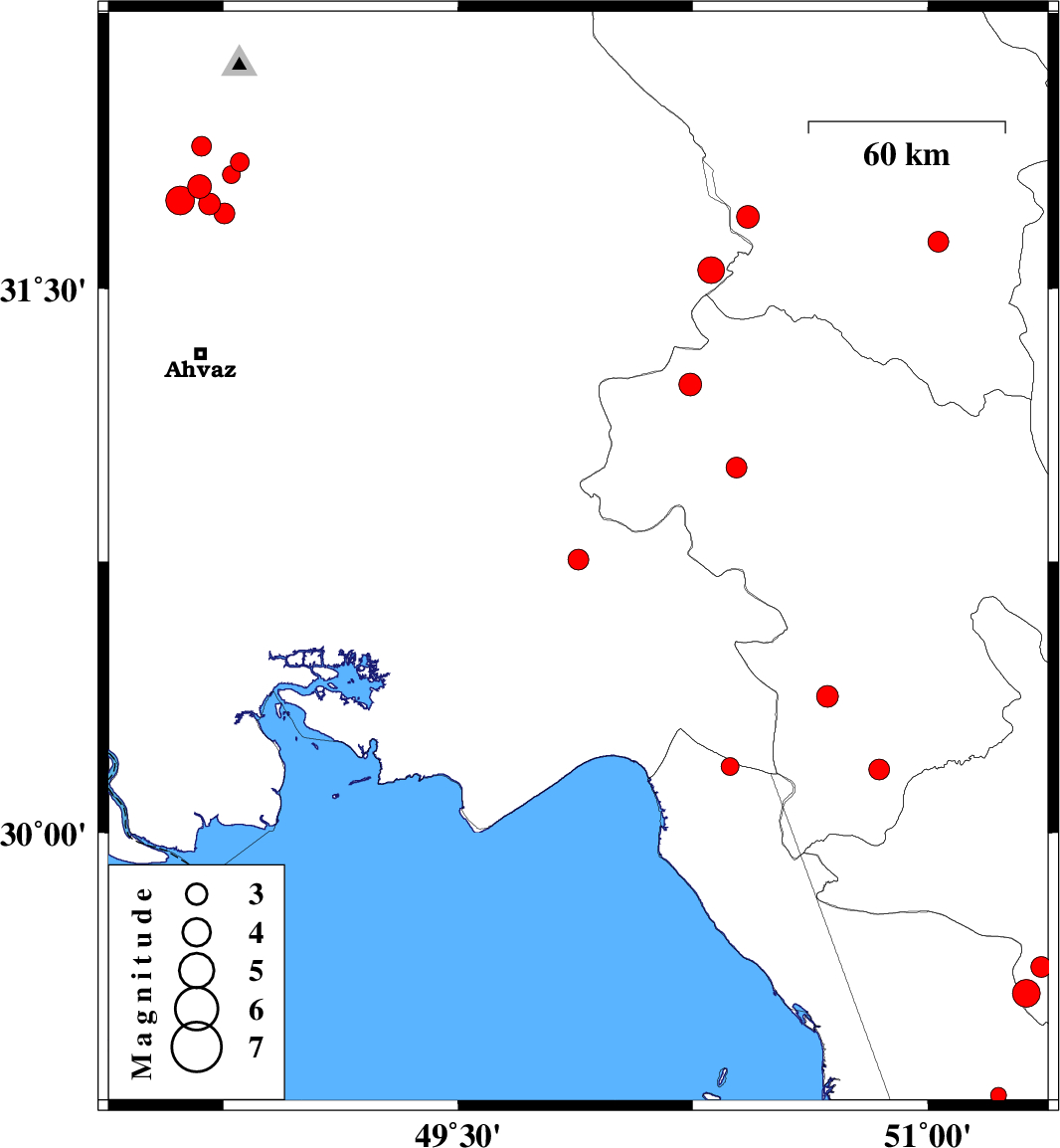 | 2018/02/16 | 12:14:03.1 | 15:44:03.1 | 31.845 | 48.803 | 15 | ML2.7 | Khoozestan Province, 22 km South of Shushtar | ||