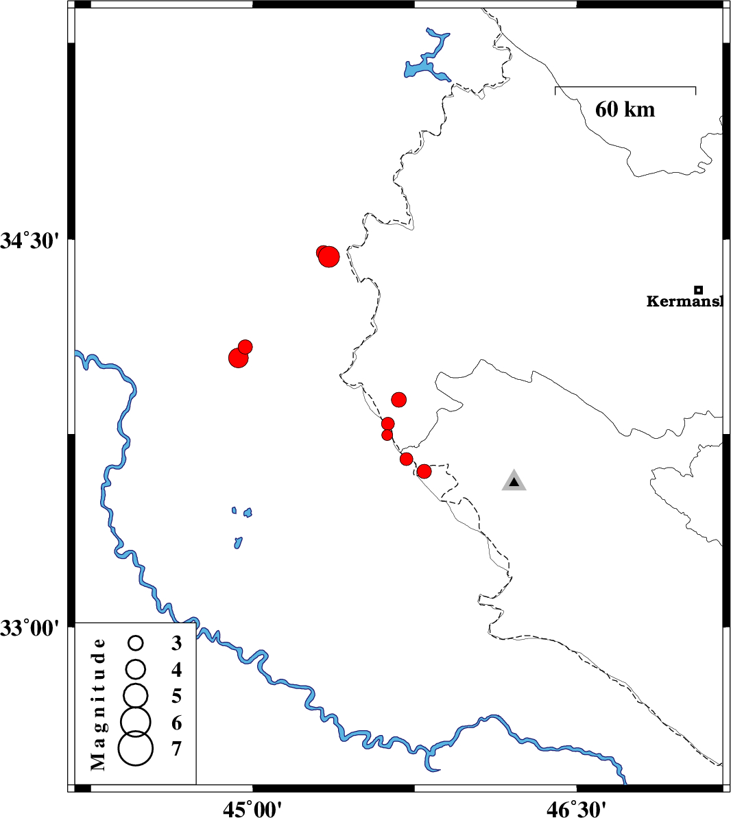 | 2018/02/19 | 11:02:01.4 | 14:32:01.4 | 34.433 | 45.352 | 14 | ML4.4 | Iraq, 23 km -West of Qasr-E-Shirin | ||
