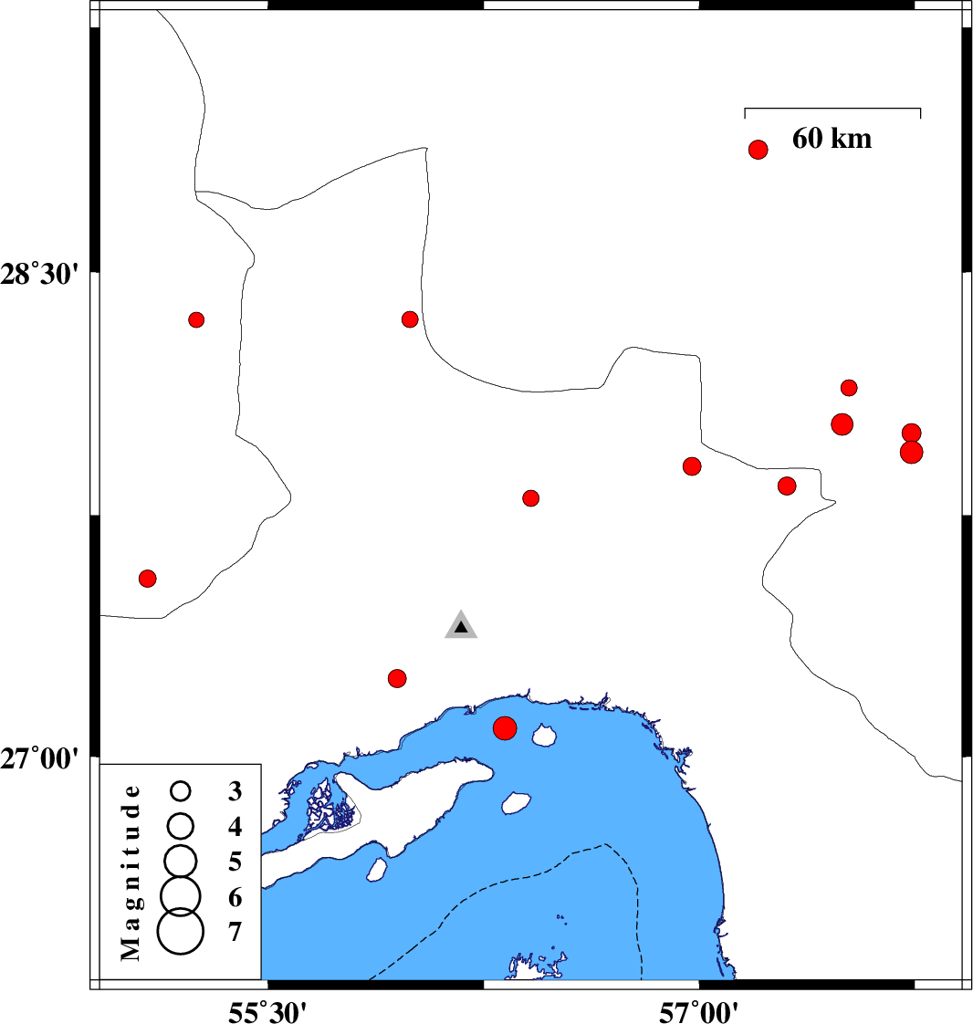 | 2018/02/19 | 02:24:25.5 | 05:54:25.5 | 27.089 | 56.324 | 11 | ML3.6 | Persian Gulf, 11 km of Bandar-e abbas | ||